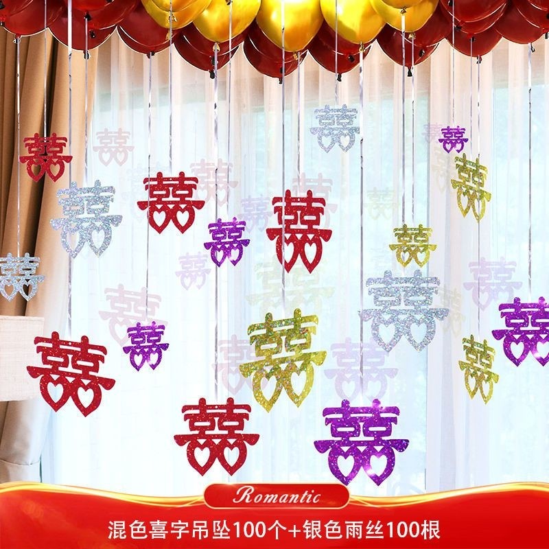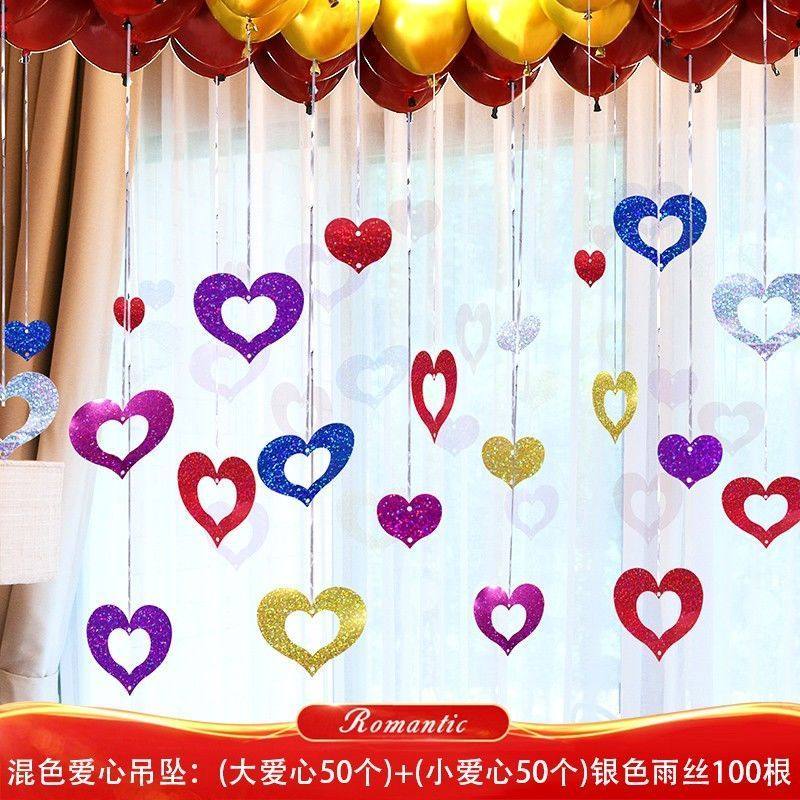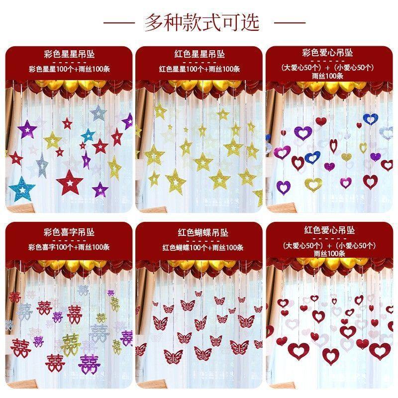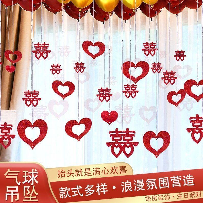 婚房气球吊坠心形新房装饰婚礼女方客厅布置场景浪漫雨丝亮片用品