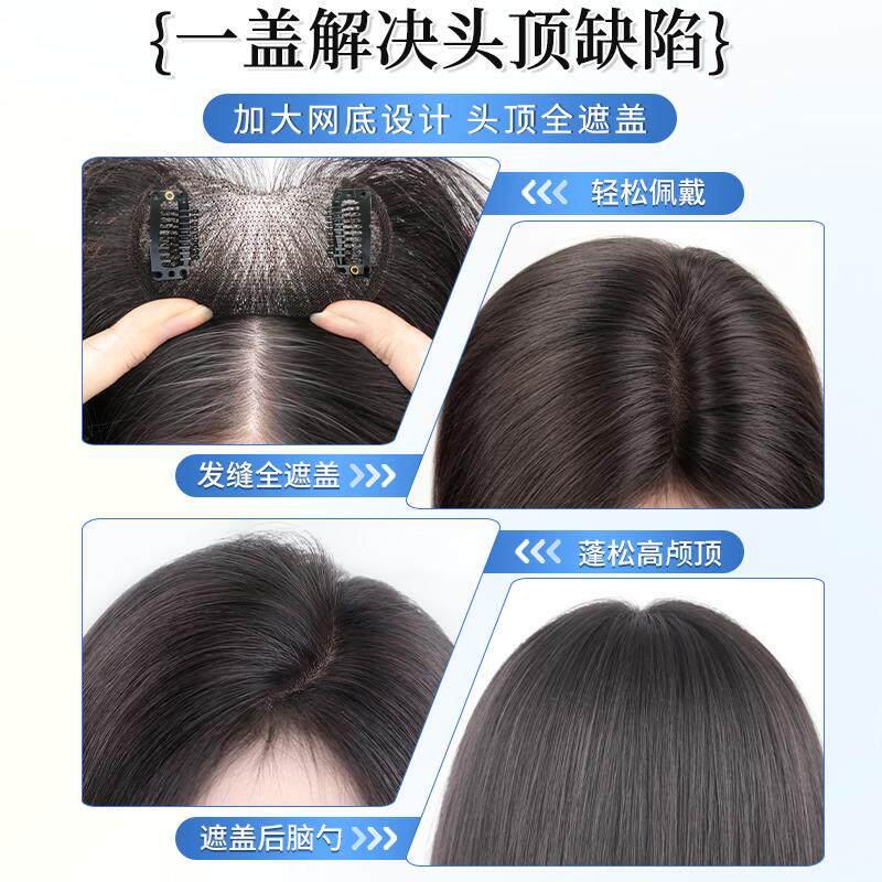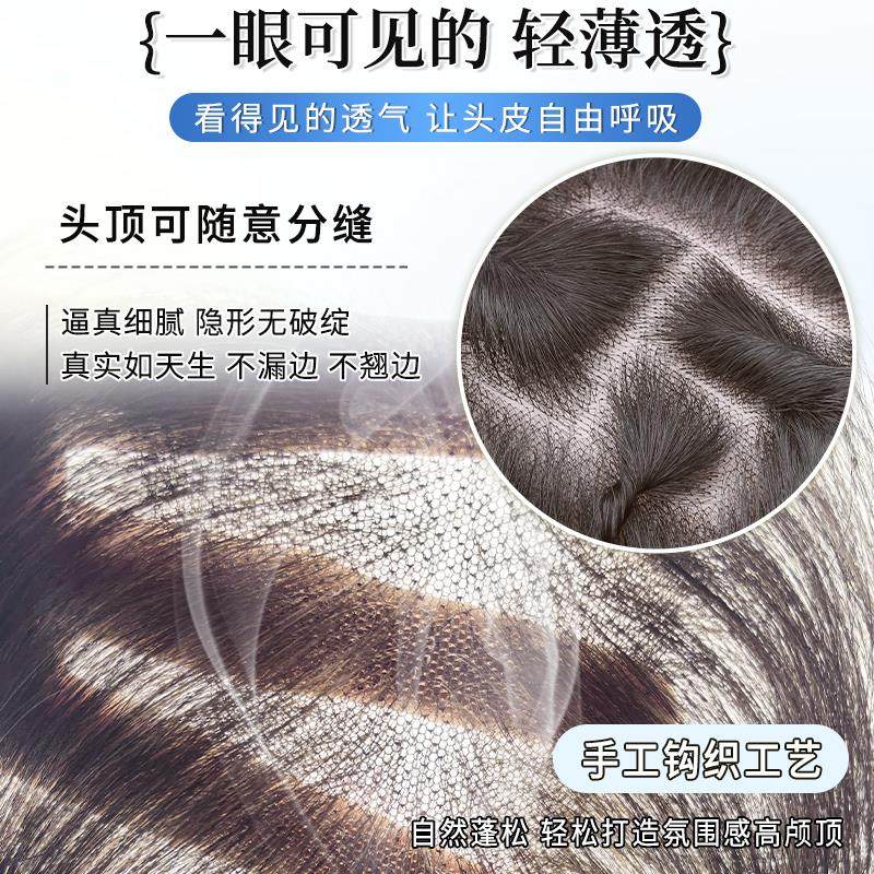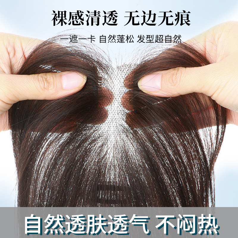 刘海假发女片头顶补发蓬松真发高颅顶量遮白发无痕假发片前额八字