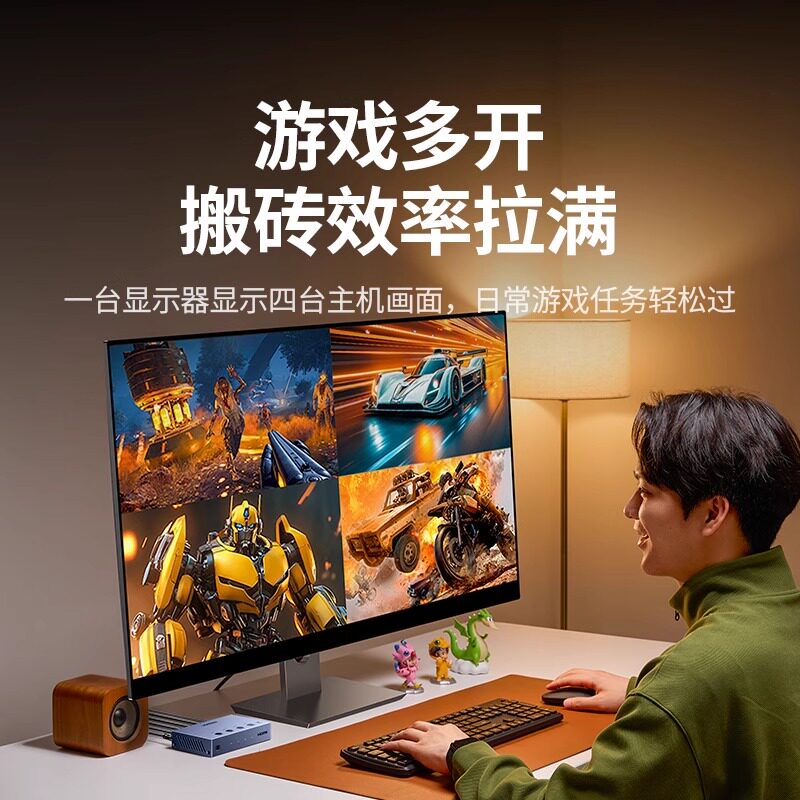 绿联hdmi分屏器四进一出多屏显示画面分割器切换器一分四屏幕切割器4路适用dnf搬砖高清音视频4进1出扩展