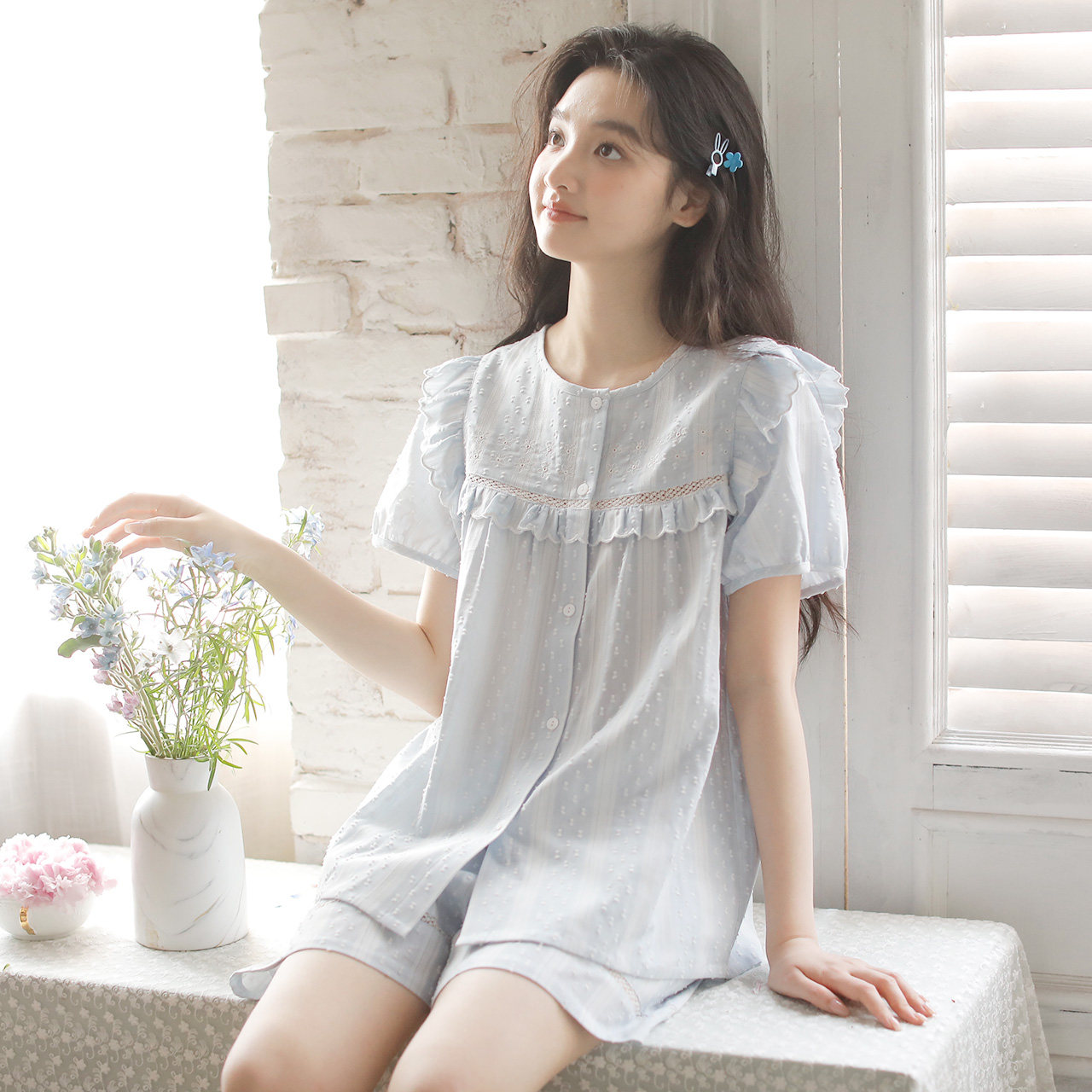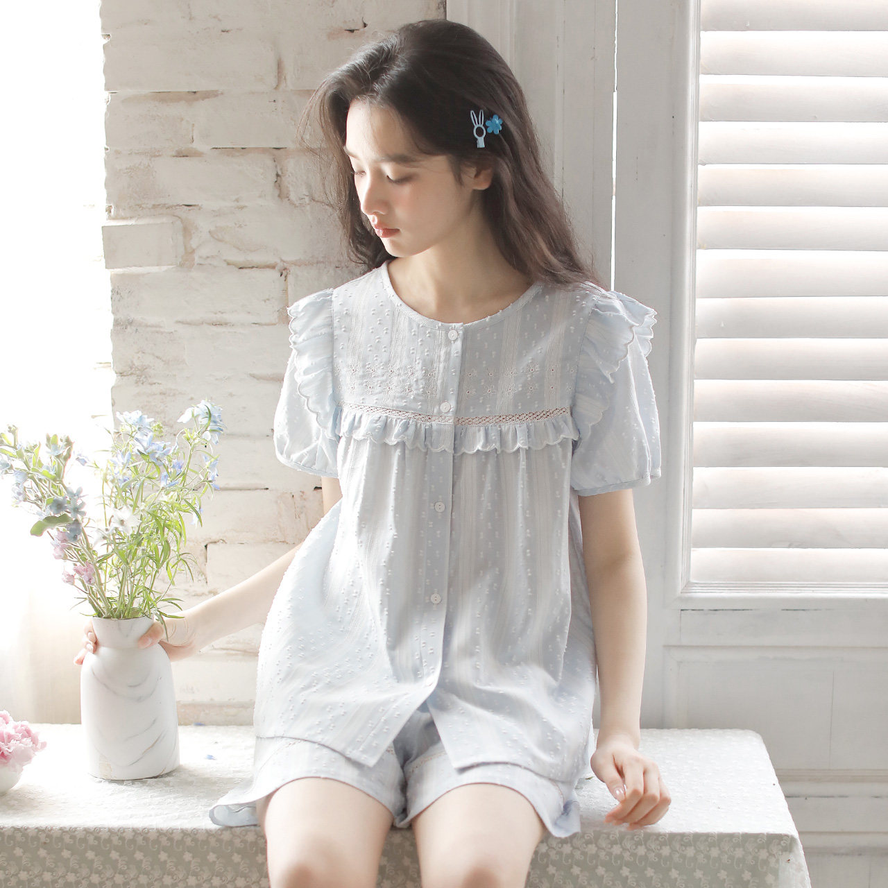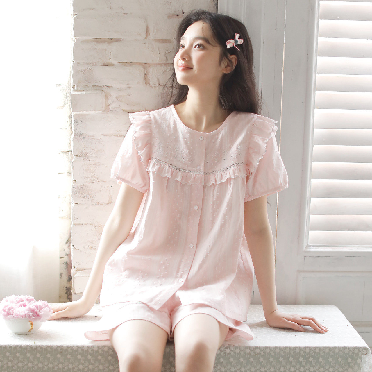 caramella睡衣女夏季2025新款纯棉薄款两件套套装家居服短袖短裤