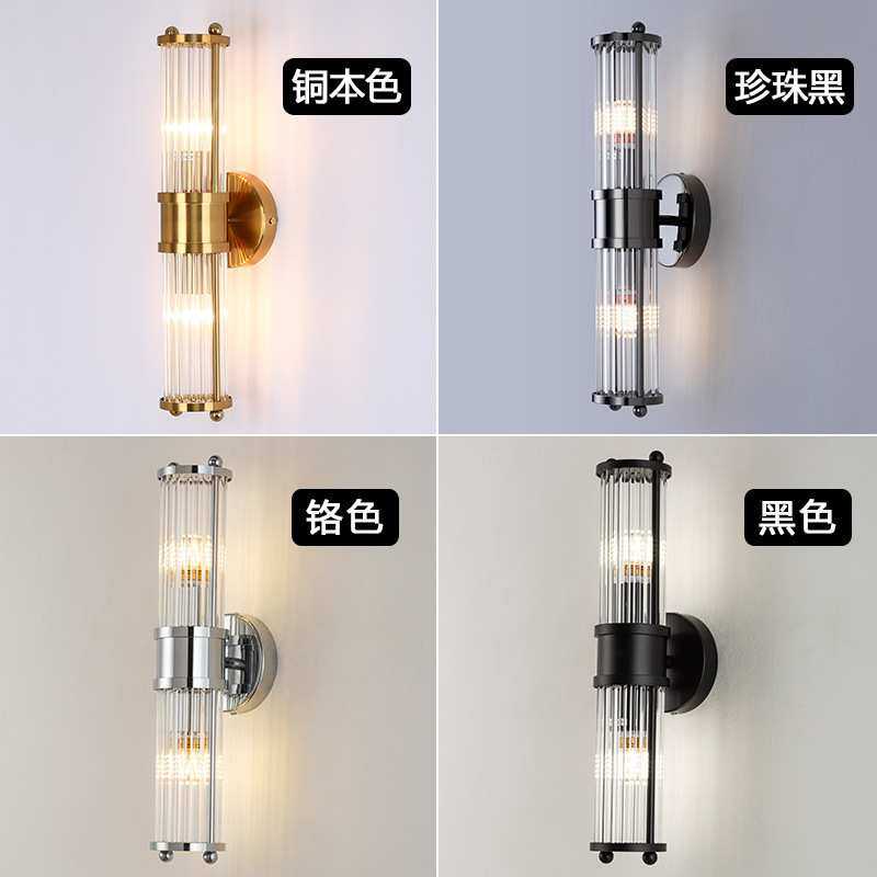美式复古全铜卧室床头壁灯简约现代客厅背景墙室内壁挂式水晶灯