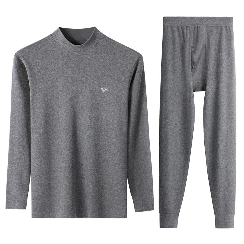 七匹狼保暖中领薄款秋衣秋裤内衣男款男士纯棉套装全棉毛衫打底衫