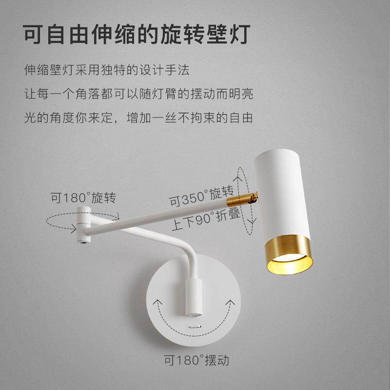 极简床头壁灯轻奢简约现代书房阅读看书led创意伸缩摇臂卧室墙灯