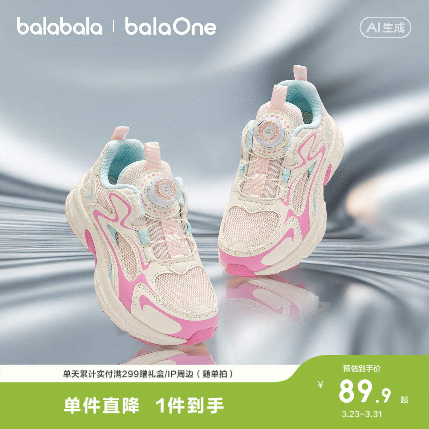 巴拉巴拉儿童运动鞋透气男童女童鞋子2025夏新款老爹鞋网布小白鞋