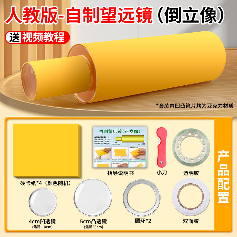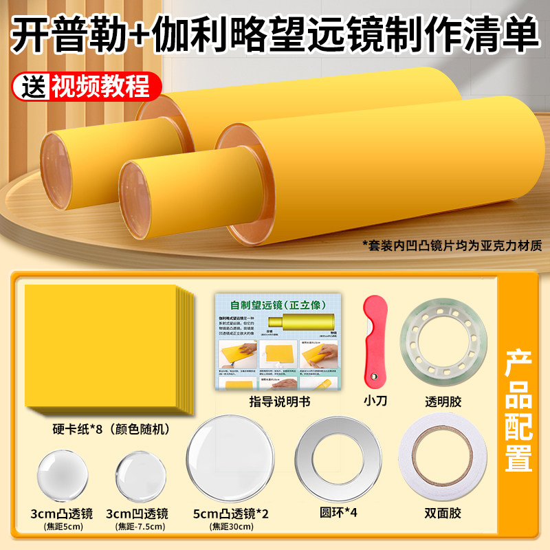 学生自制望远镜模型制作材料透镜片伽利略开普勒凹透镜初中物理光学实验器材教具小学科学DIY手工材料包玻璃