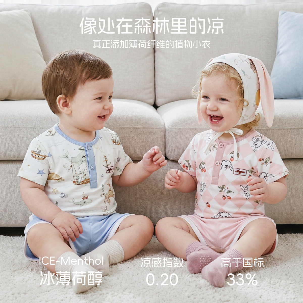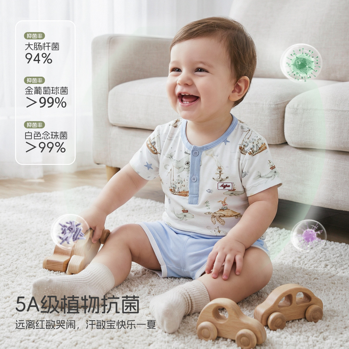 aqpa爱帕儿童婴儿短袖T恤纯棉透气夏季晾干宝宝上衣可爱萌