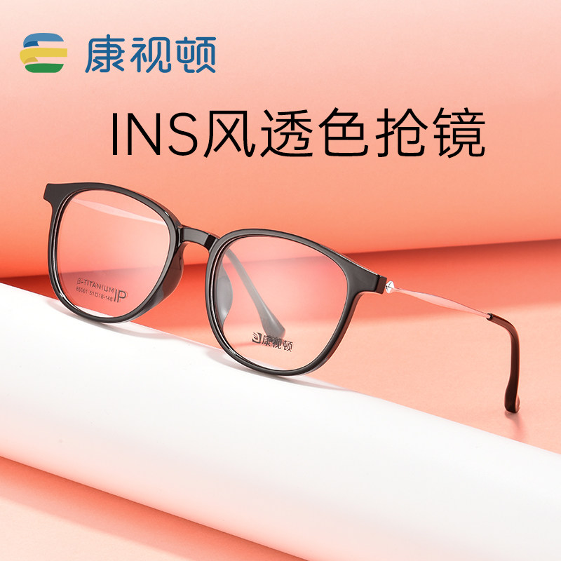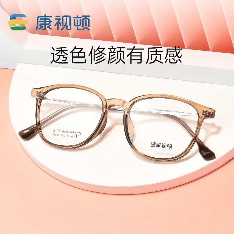 康视顿新款冷茶色钛材眼镜架女近视时尚板材素颜86061/5119