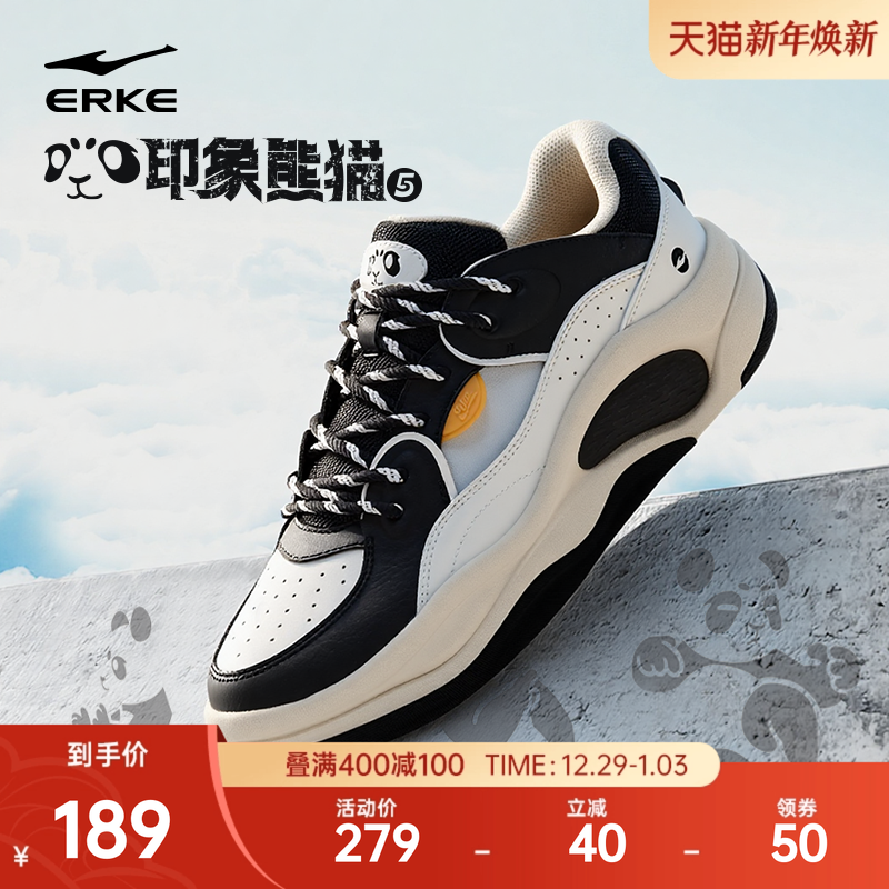 于适印象熊猫鸿星尔克板鞋运动鞋冬季新款男鞋休闲鞋子厚底老爹鞋