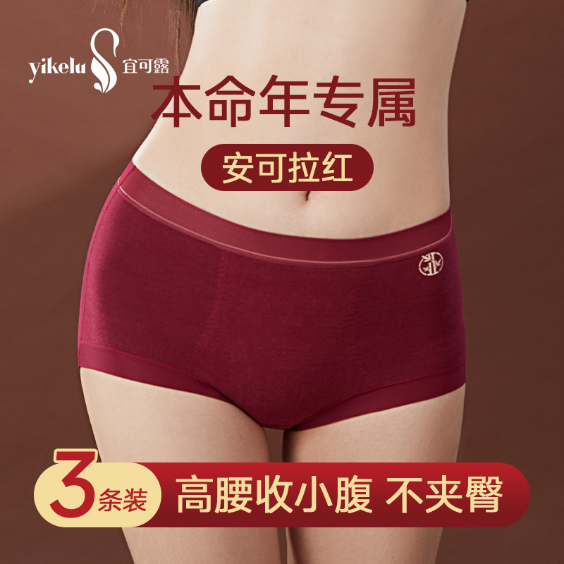 本命年鸿运中高腰内裤女士收腹竹纤维A类抑菌加长裆无痕三角2025