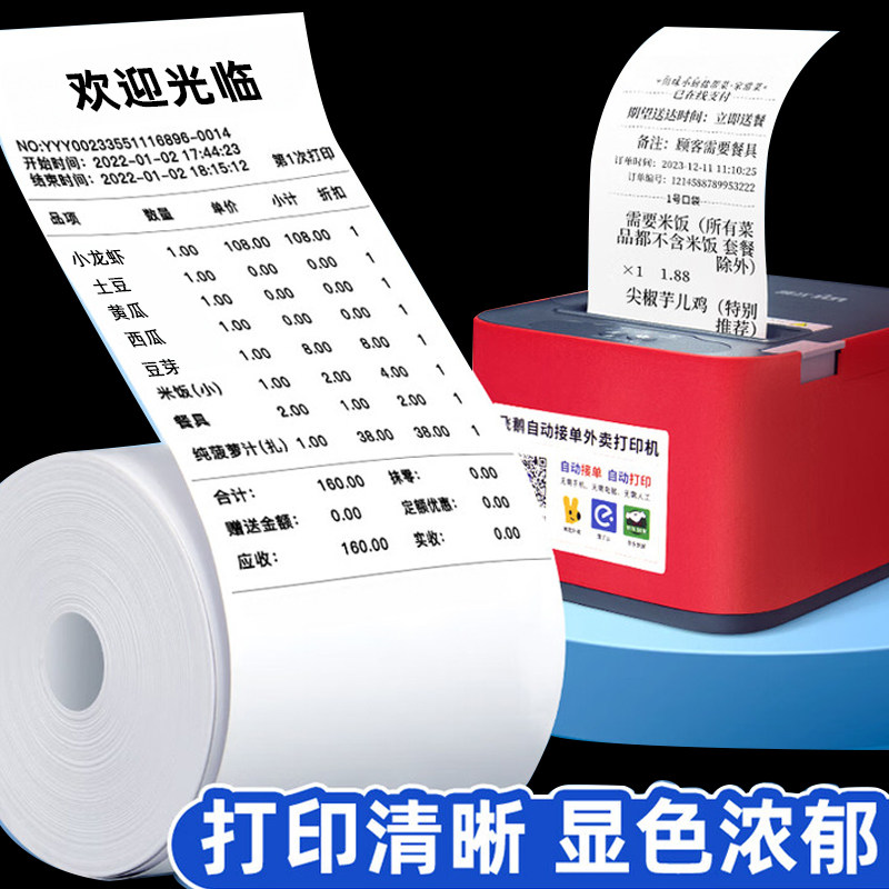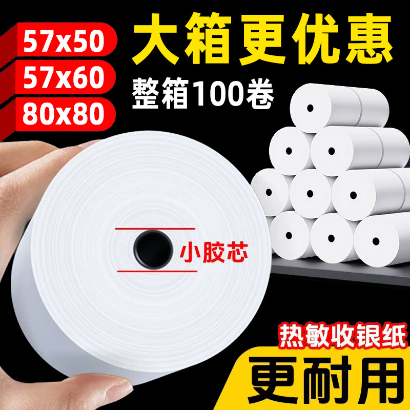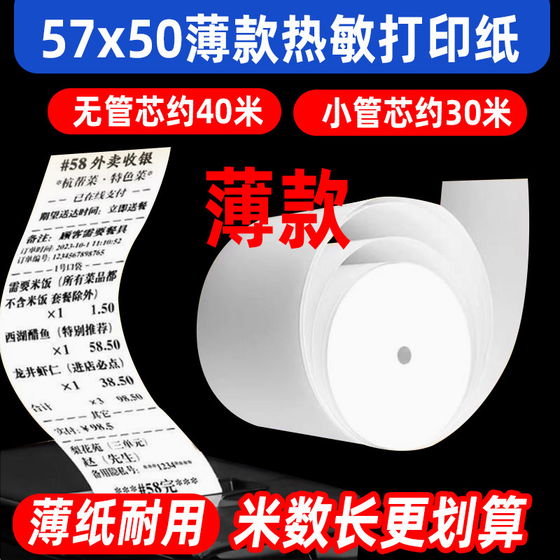 57x60热敏打印纸57x50无管芯薄款收银纸80x80超市美团外卖小票纸