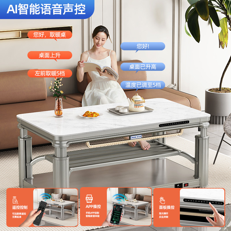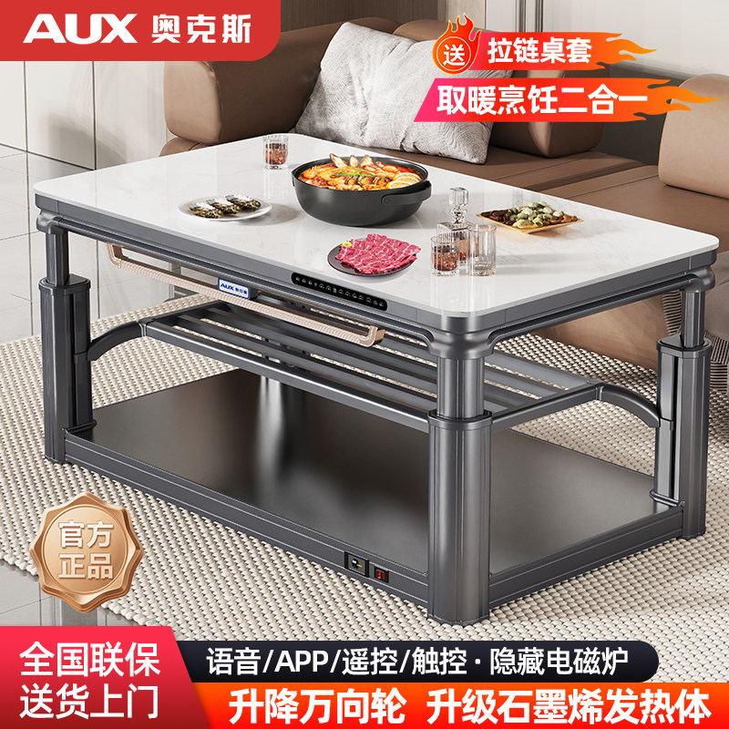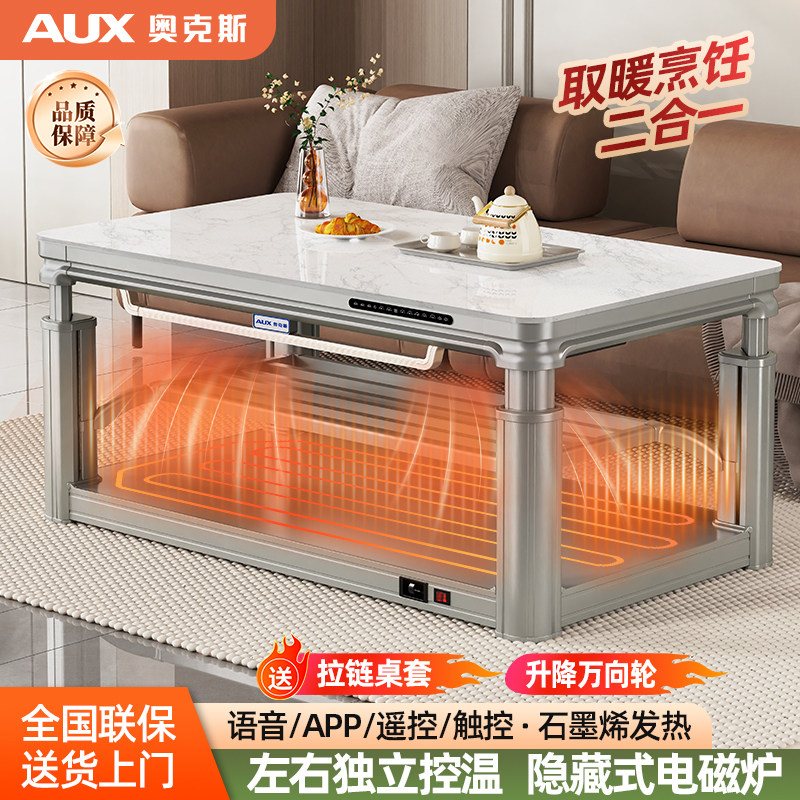 奥克斯升降电暖茶几岩板上下发热取暖桌电暖桌烤火桌家用客厅