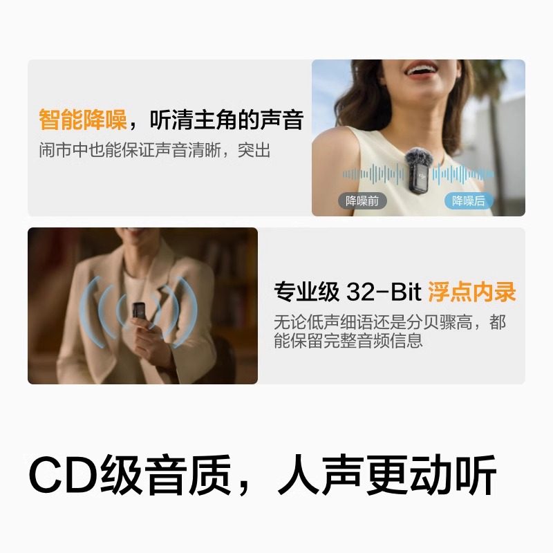 (直降400元)DJI 大疆Mic 2 无线麦克风 相机直播收音领夹小蜜蜂
