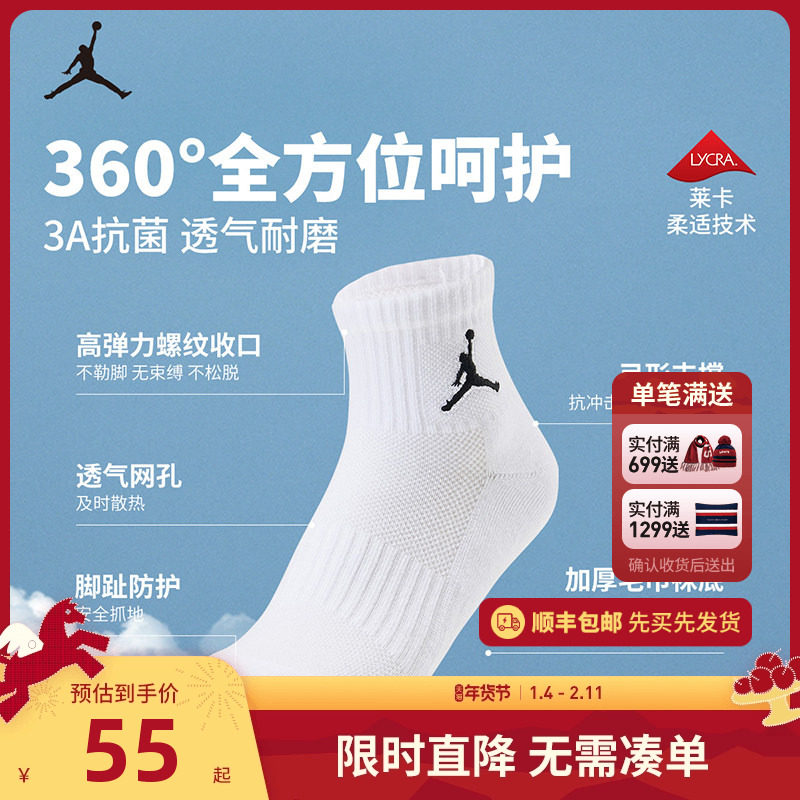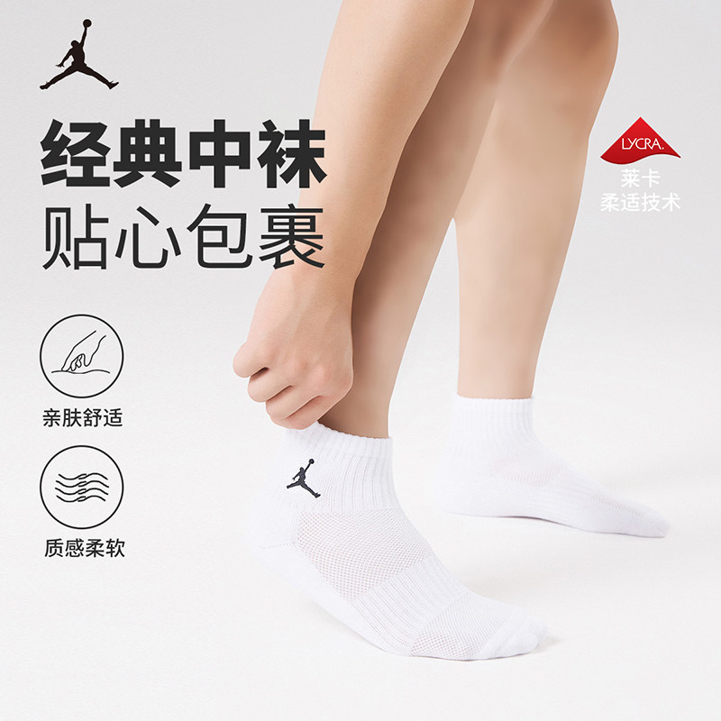Jordan男童女童袜子冬季新款儿童男生运动袜透气中大童中袜三双装