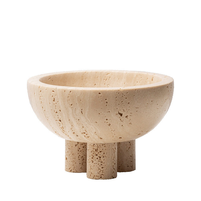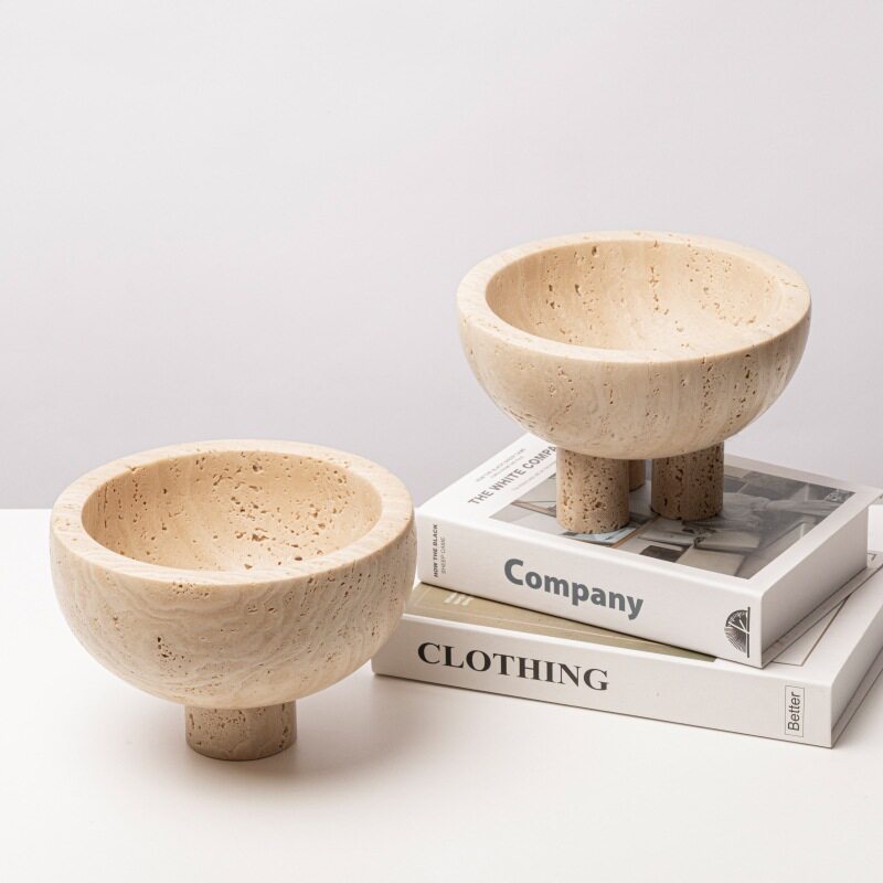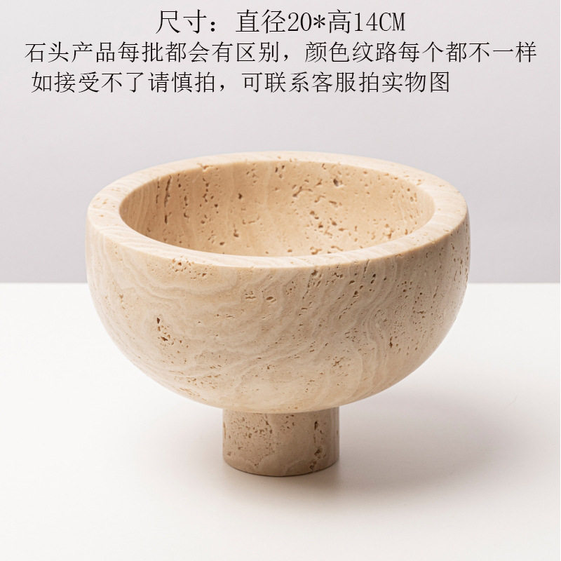 风创意大理石三角果盘收纳装饰品客厅餐桌黄洞石花盆花器摆件