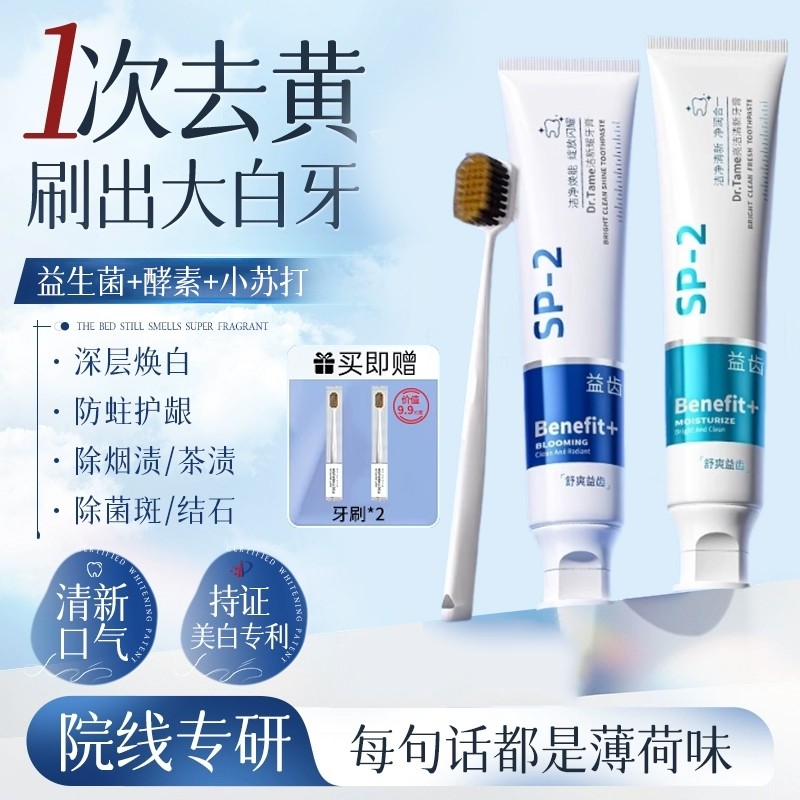 小苏打美白牙膏益生菌酵素去黄成人速效洗白锁白牙齿健康口腔去渍