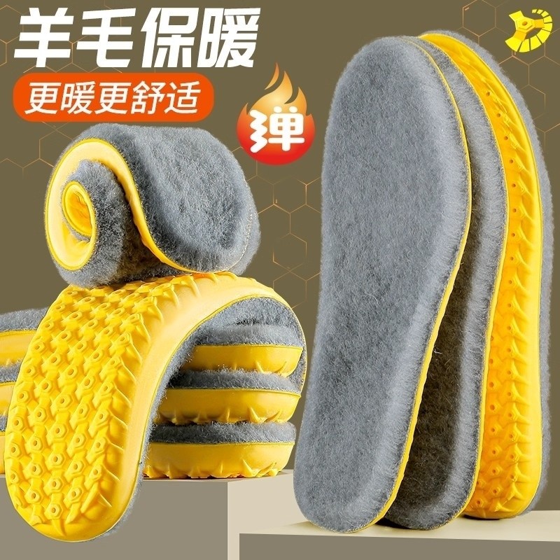 4D超软羊毛保暖鞋垫运动踩屎感男女高弹减震乳胶加绒加厚棉鞋垫冬