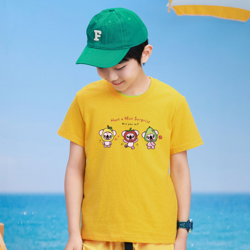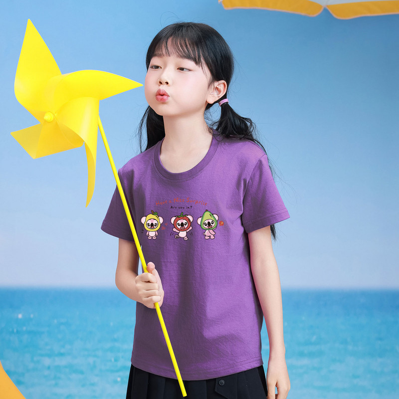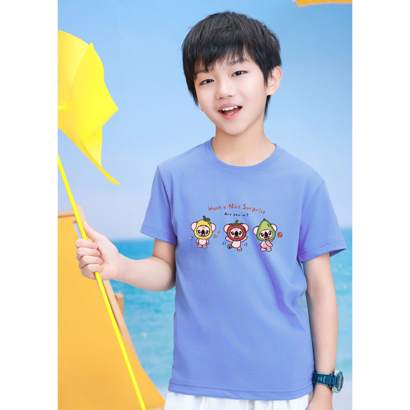 XK真维斯童2025夏季新款男女童同款圆领短袖T恤印花上衣