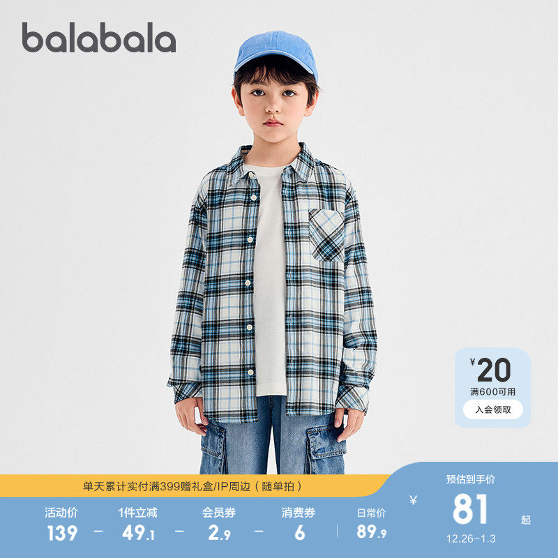 【商场同款】巴拉巴拉男童衬衫儿童长袖2025新款秋装女童格子外套
