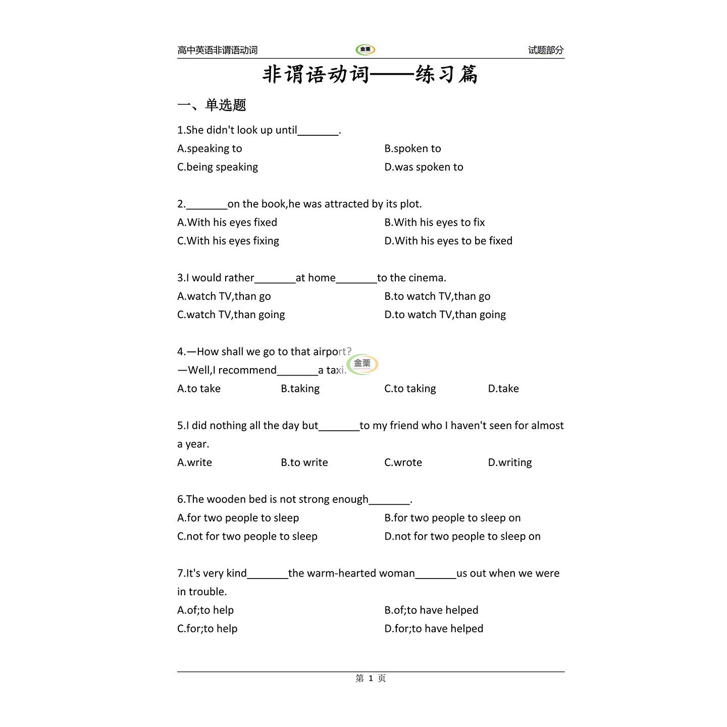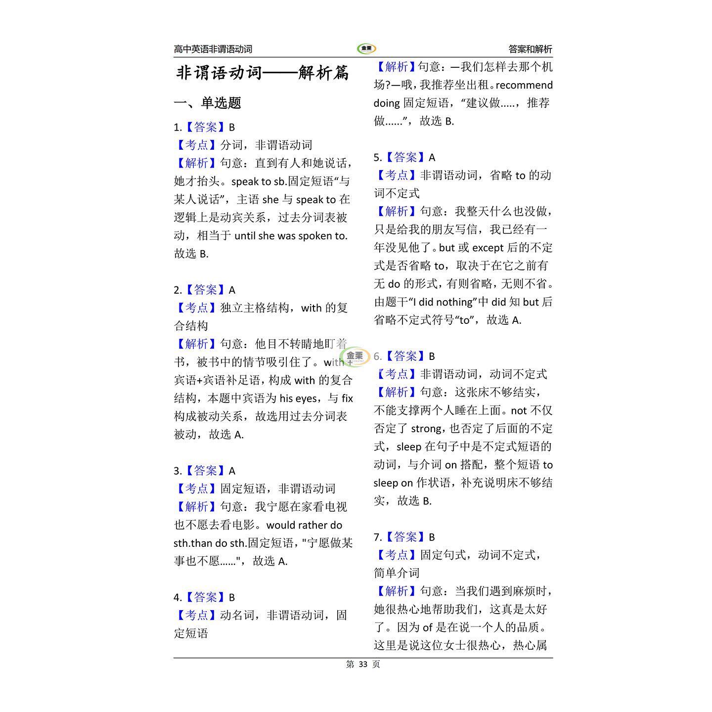 高中英语非谓语动词专项练习册含思维导图解析300题高中高考通用