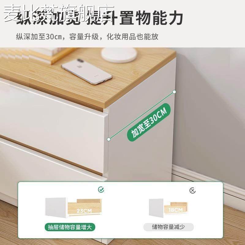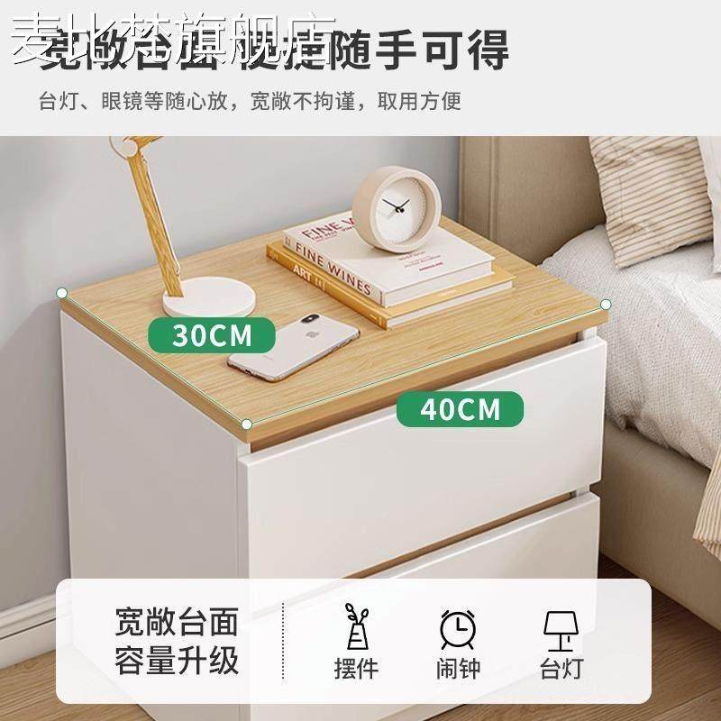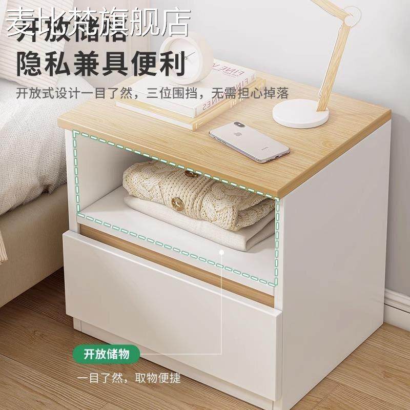 麦比梵实木色床头柜现代简约卧室小型床边柜家用简易新款床头柜子储物柜床笠拉车