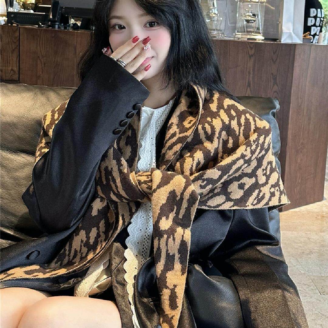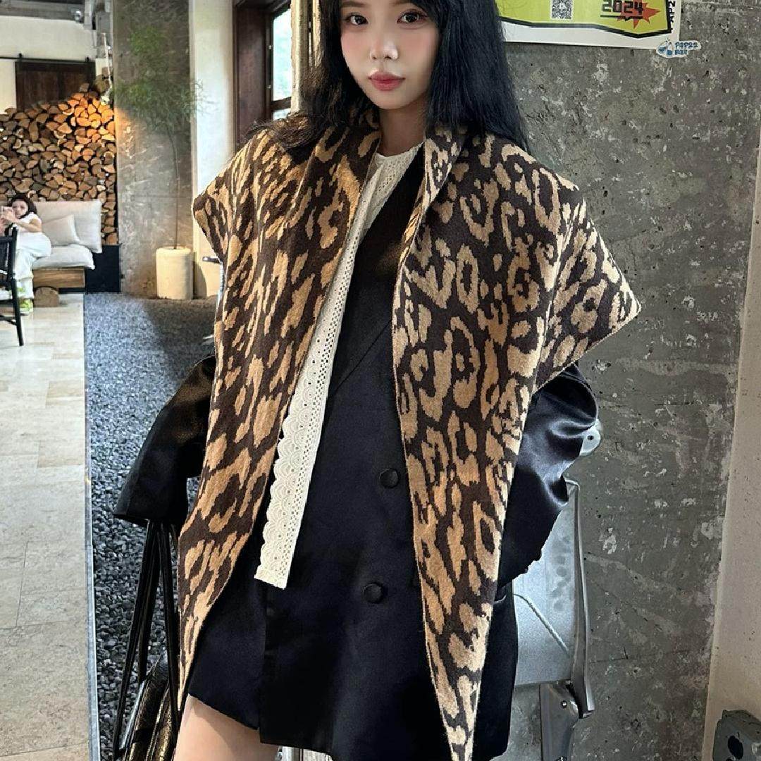 韩国东大门复古豹纹三角大披肩女2025秋冬新款空调房搭肩保暖围巾