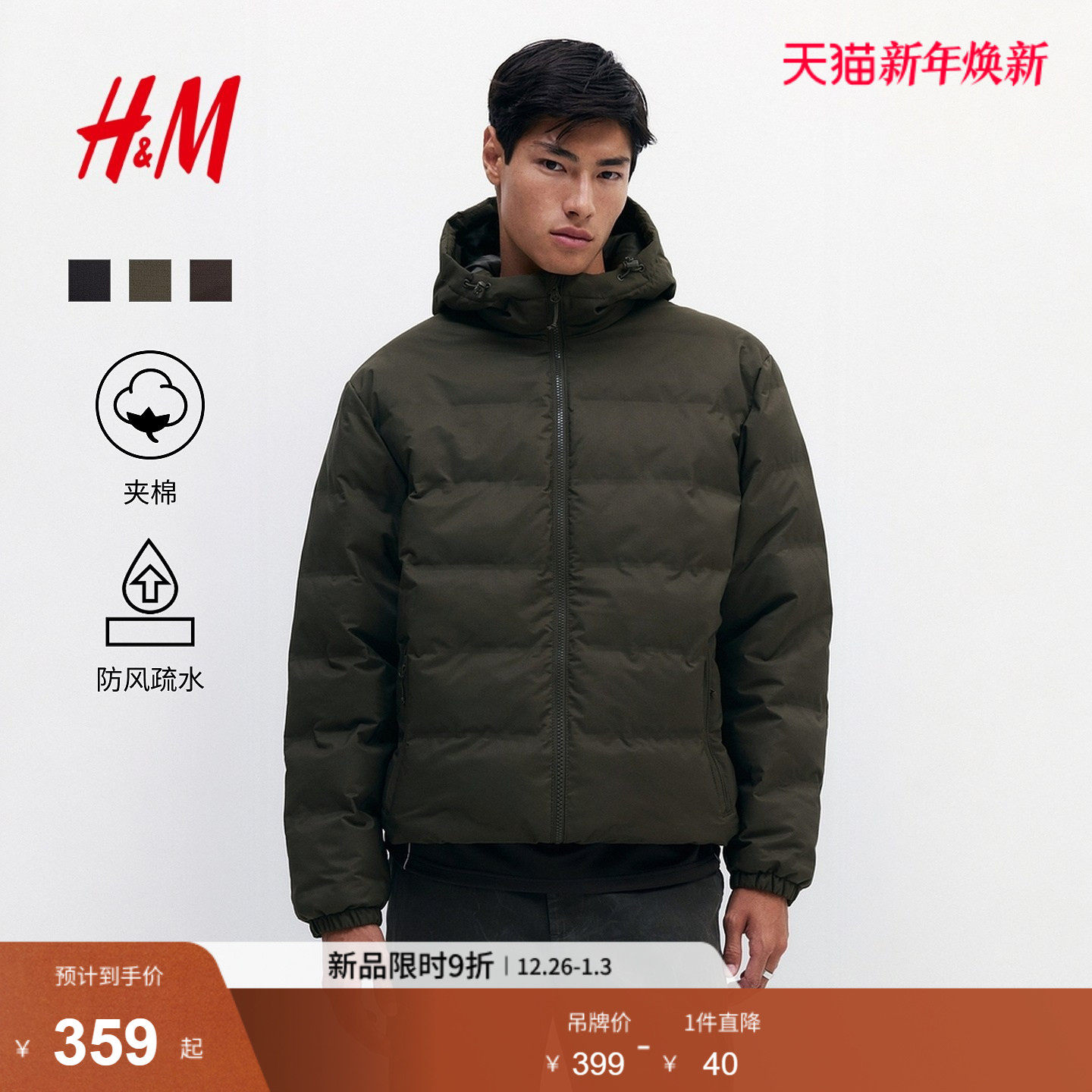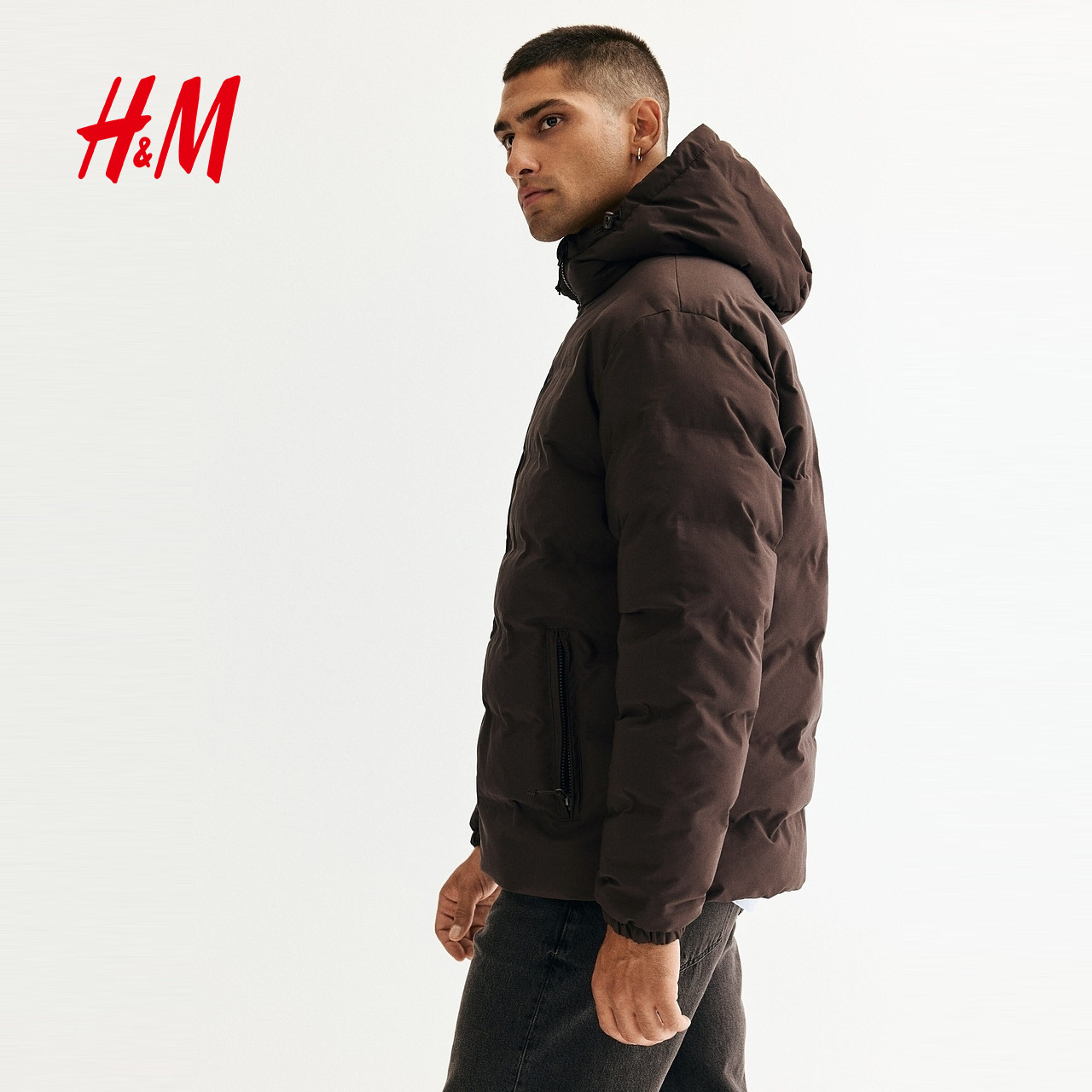 HM男装棉服2025年冬季新款标准版型绗缝梭织防风疏水棉服1274642
