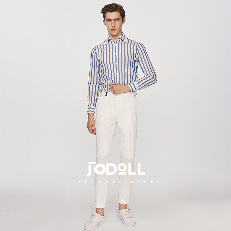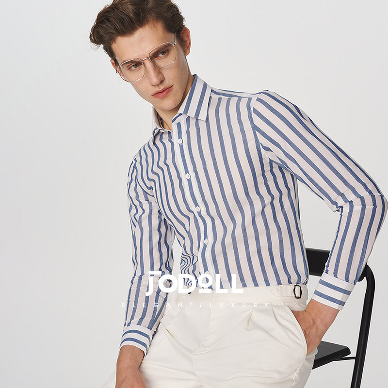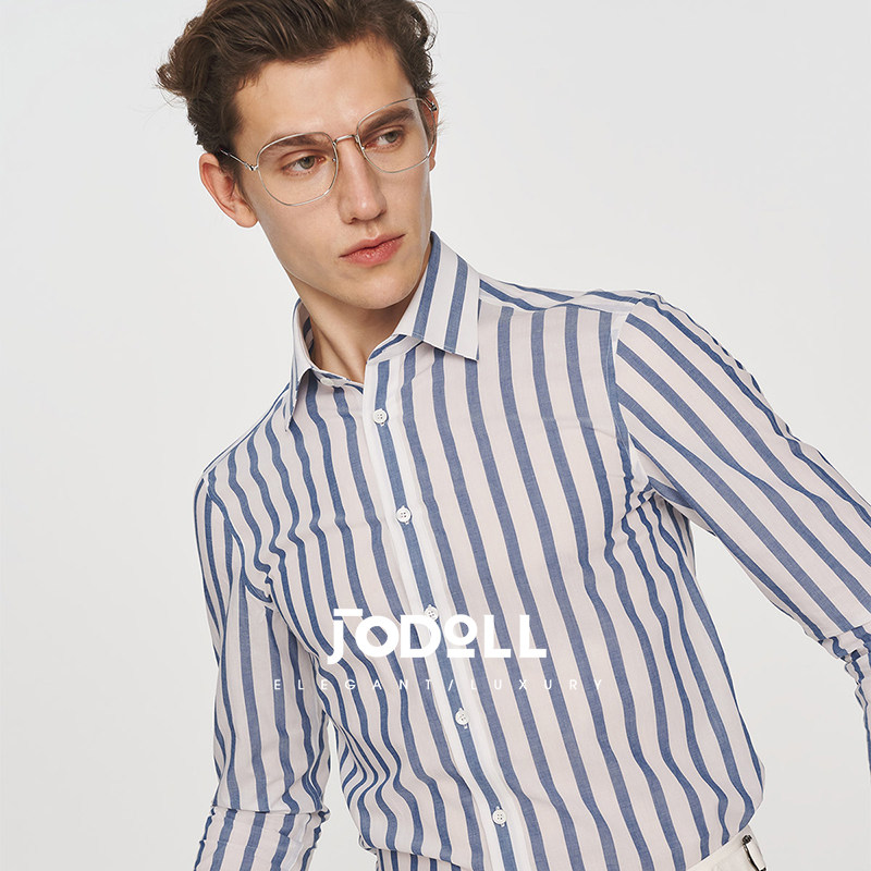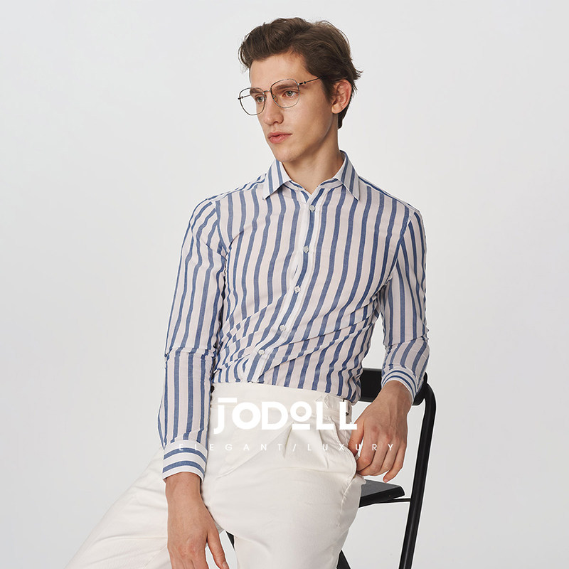 JODOLL乔顿男士衬衣2025年秋冬新款商务休闲撞色条纹亚麻长袖衬衫