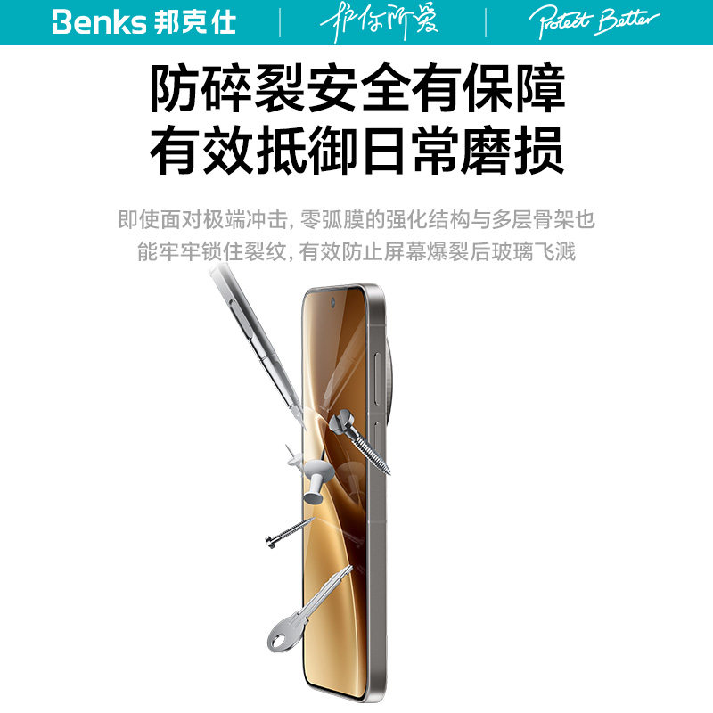 Benks零弧vivox300pro钢化膜适用VIVO新款X300Pro手机膜曲屏覆盖全胶防摔抗指纹秒解锁高清手机玻璃300保护膜