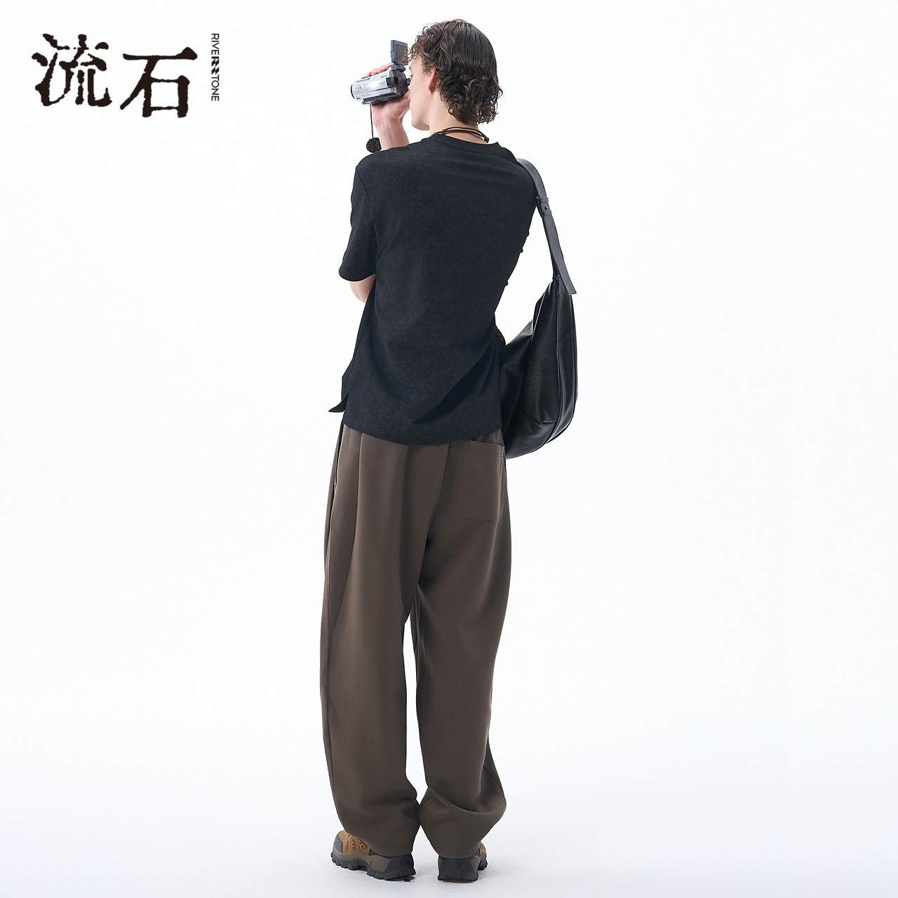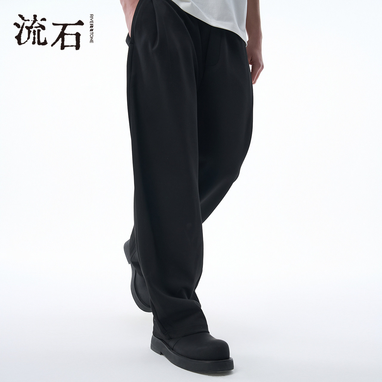 流石男装宽松休闲复古风运动裤2026年秋季新款男士阔腿弯刀长裤子
