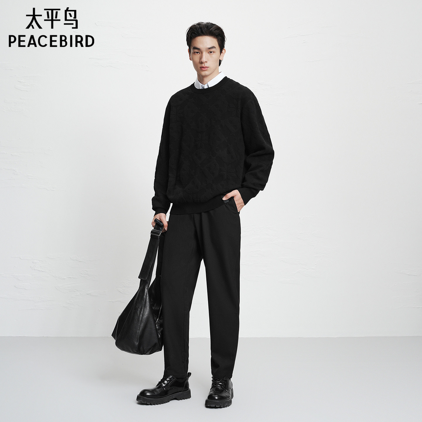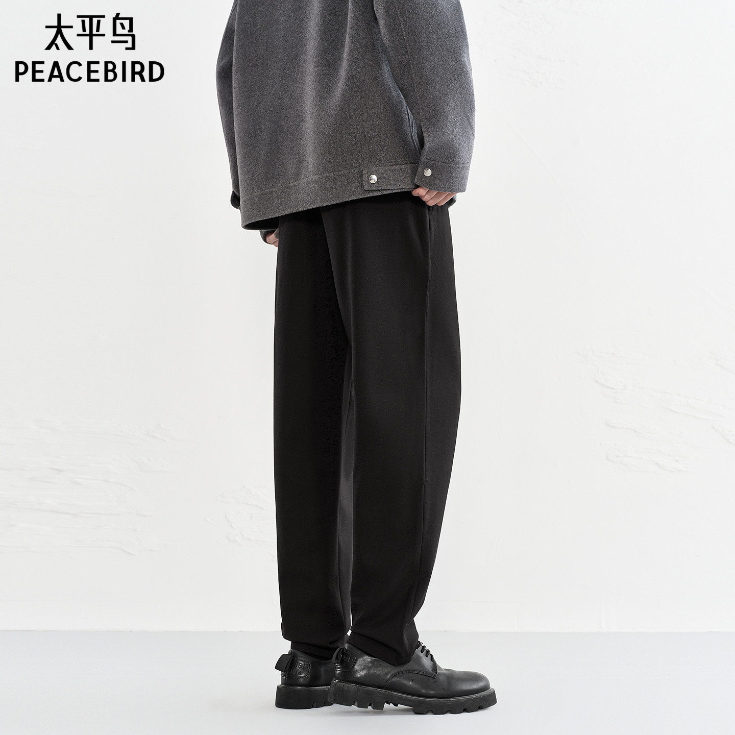 太平鸟男装 黑色质感休闲裤秋季时尚简约锥形裤青年裤子