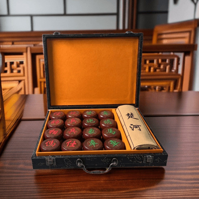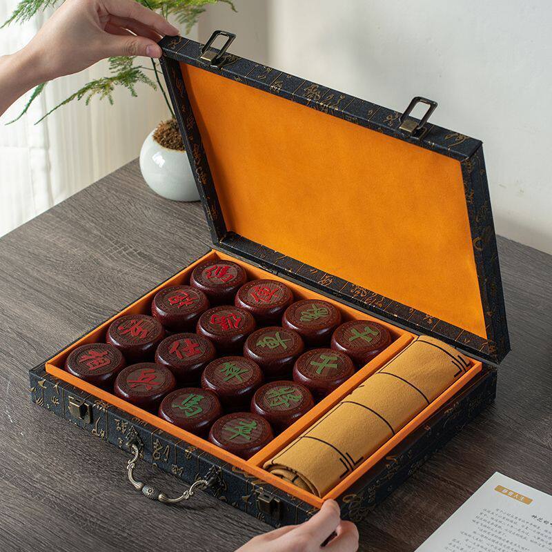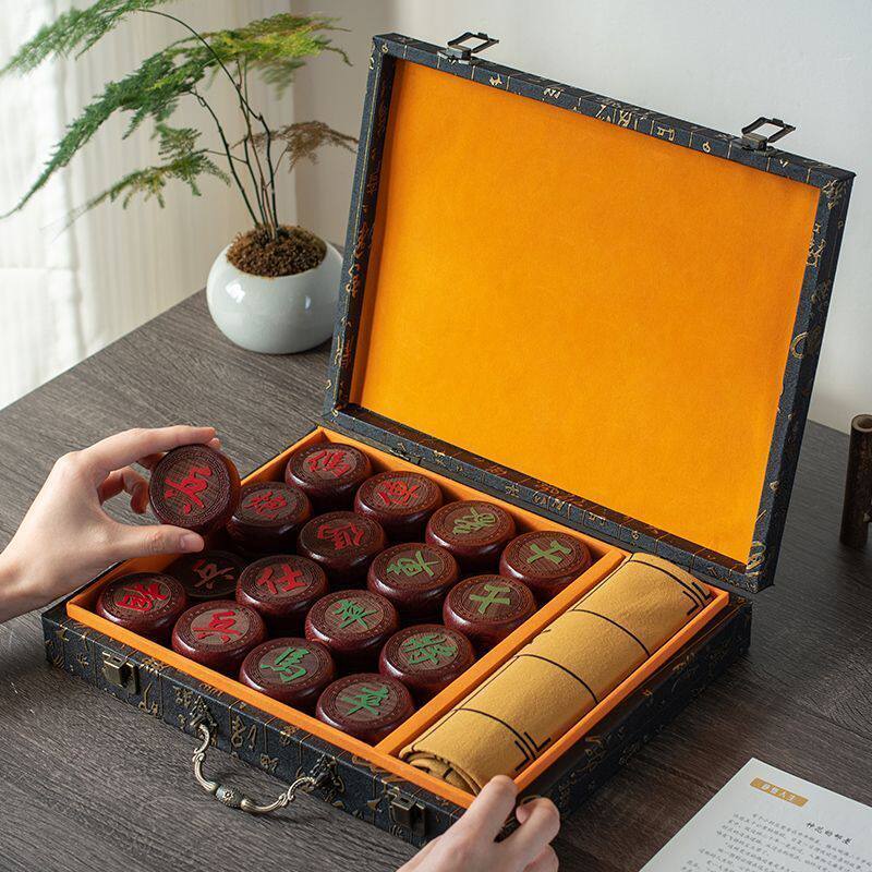 高档大号象棋中国象棋实木皮革棋盘儿童成人送礼长辈高档学生红木