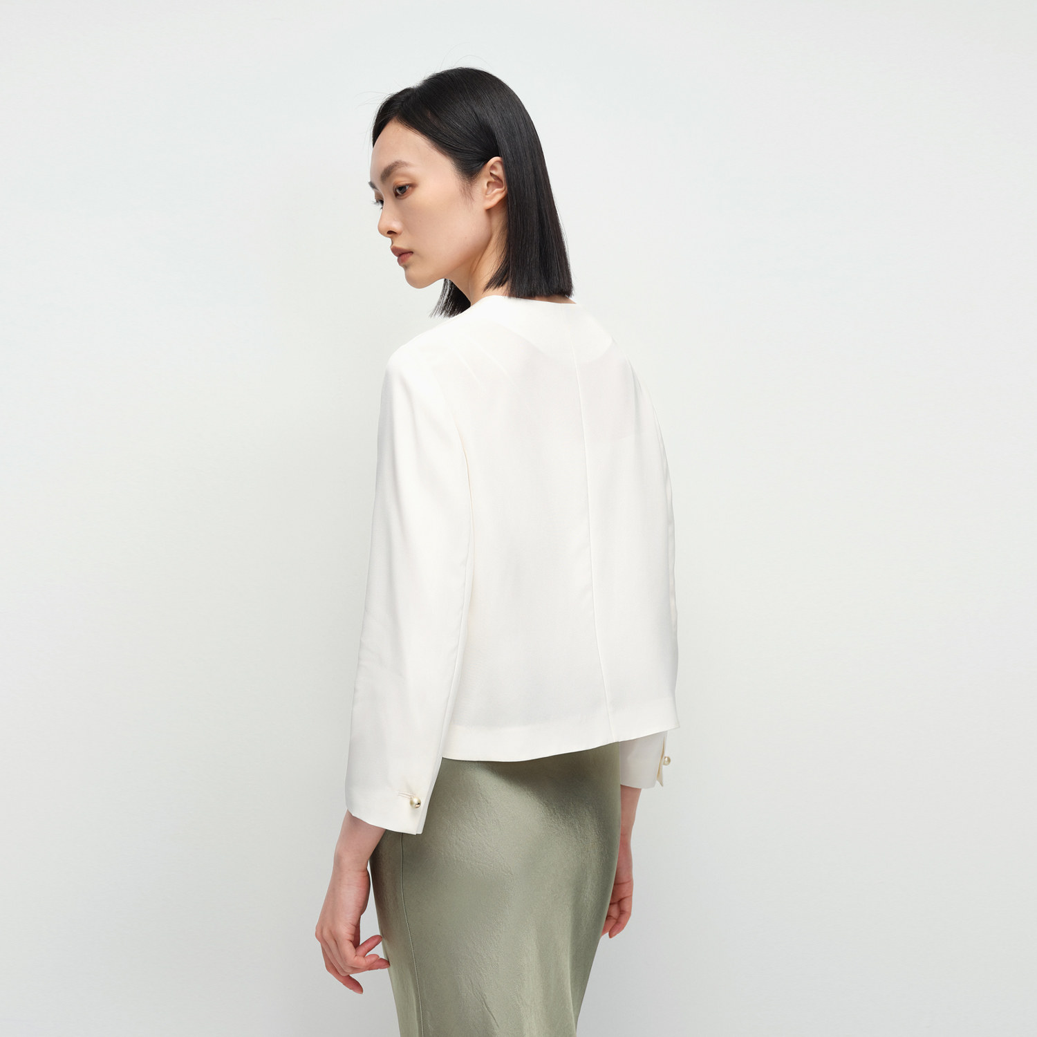 【重磅真丝】OVV2025春夏新款女装淡人22MM弹力双绉短款夹克