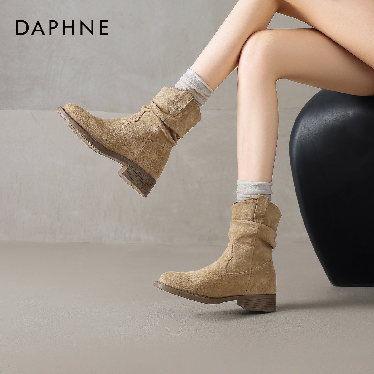 Chio2nd南风 6cm增高短靴子女2025新款爆款秋冬复古麂皮绒中筒靴