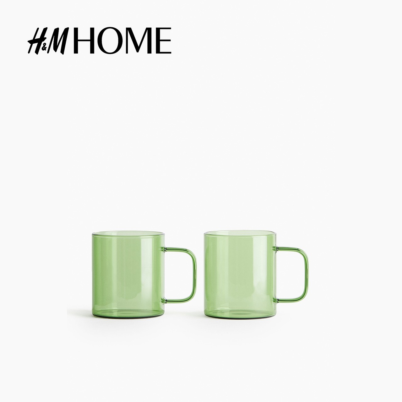 HM HOME餐具杯子2只套装咖啡杯带柄玻璃杯马克杯水杯茶杯1187602