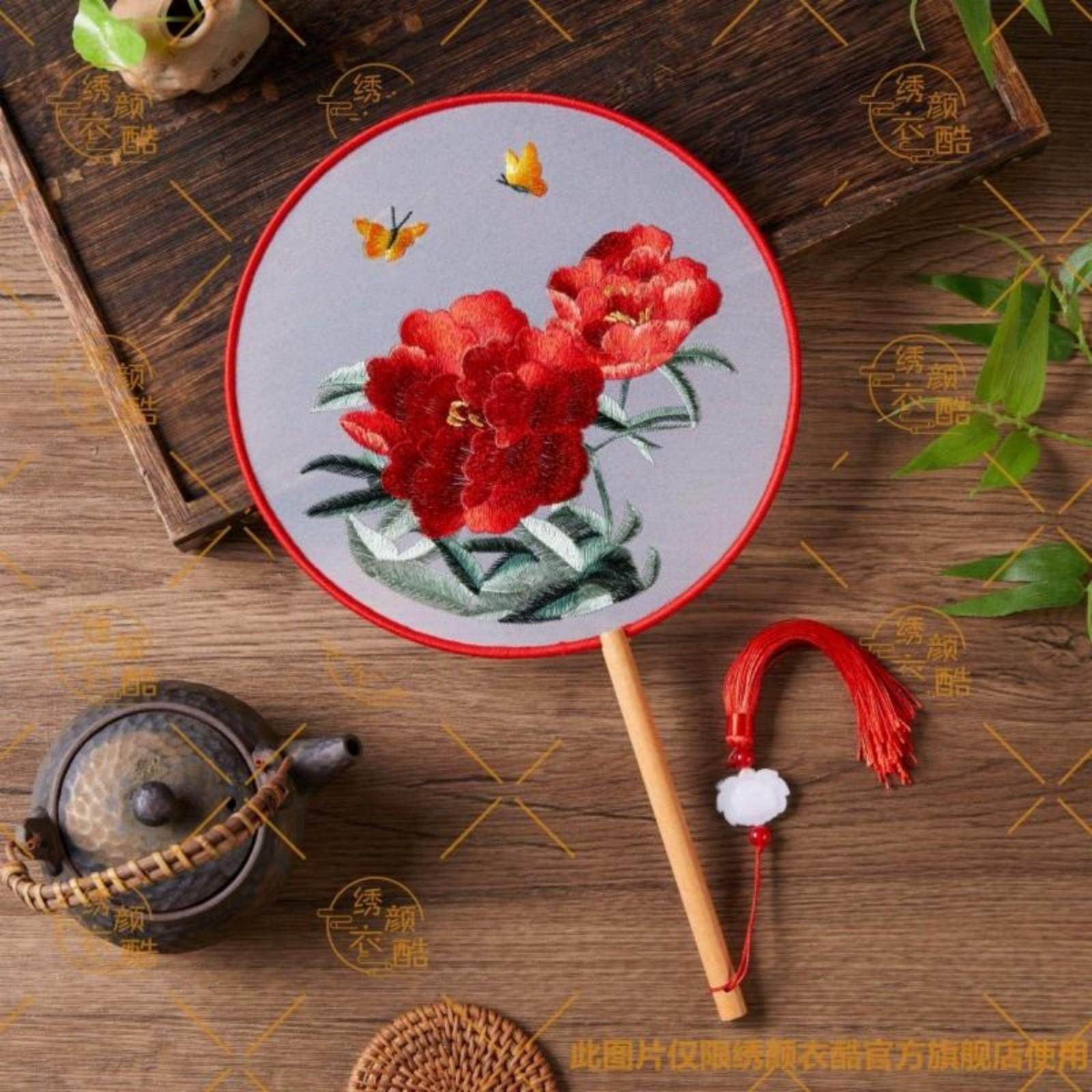 古风团扇走秀中国风圆扇子团旗袍双面绣古风扇子汉服打卡专用扇