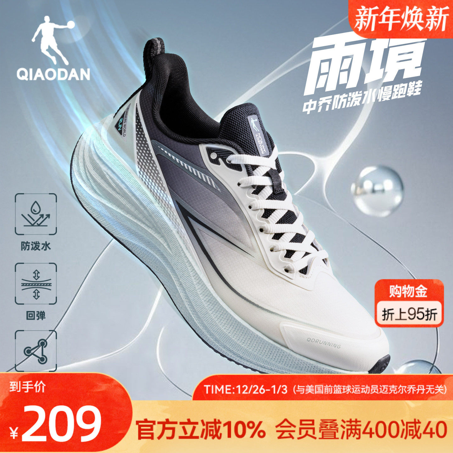 乔丹雨境丨防水运动鞋男鞋青少年跑步鞋冬季减震回弹软底训练跑鞋