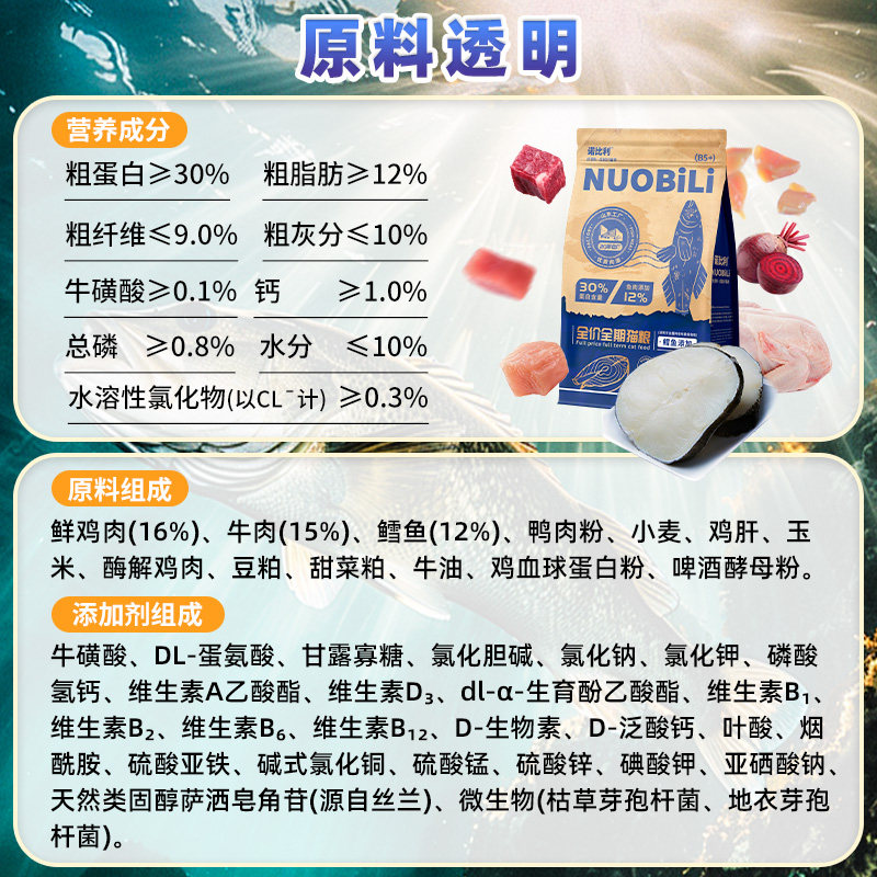 诺比利全价猫粮鳕鱼配方10斤成猫幼猫增肥发腮营养不掉毛实惠装
