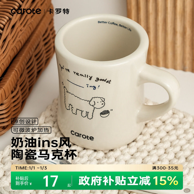 卡罗特办公室马克杯女生男生陶瓷杯子咖啡杯家用情侣水杯复古可爱