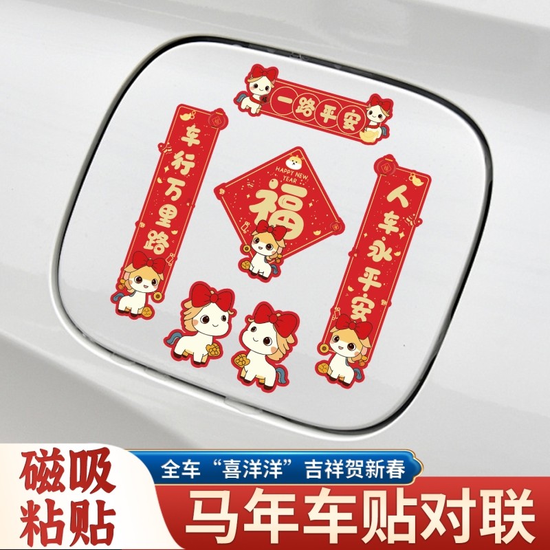 2026新年汽车对联车贴磁吸迷你创意文字马年春联电动车身油箱盖贴