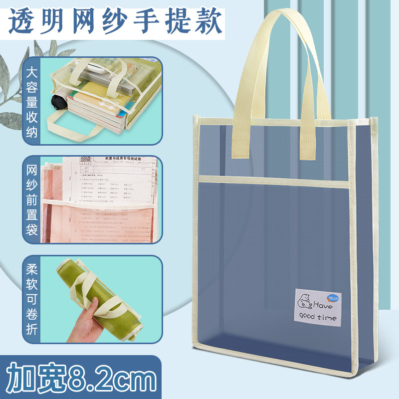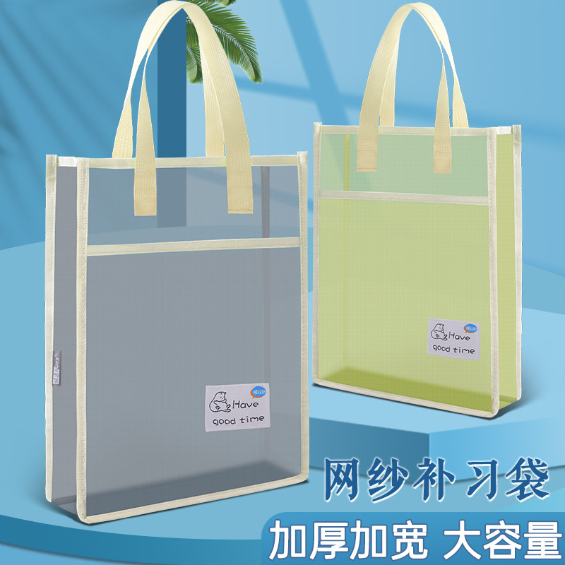 考试资料透明网纱补习袋手提袋学生拎书袋小学生女孩作业文件袋补课书袋双层男孩大容量收纳袋儿童书包手提包