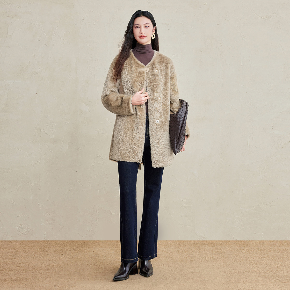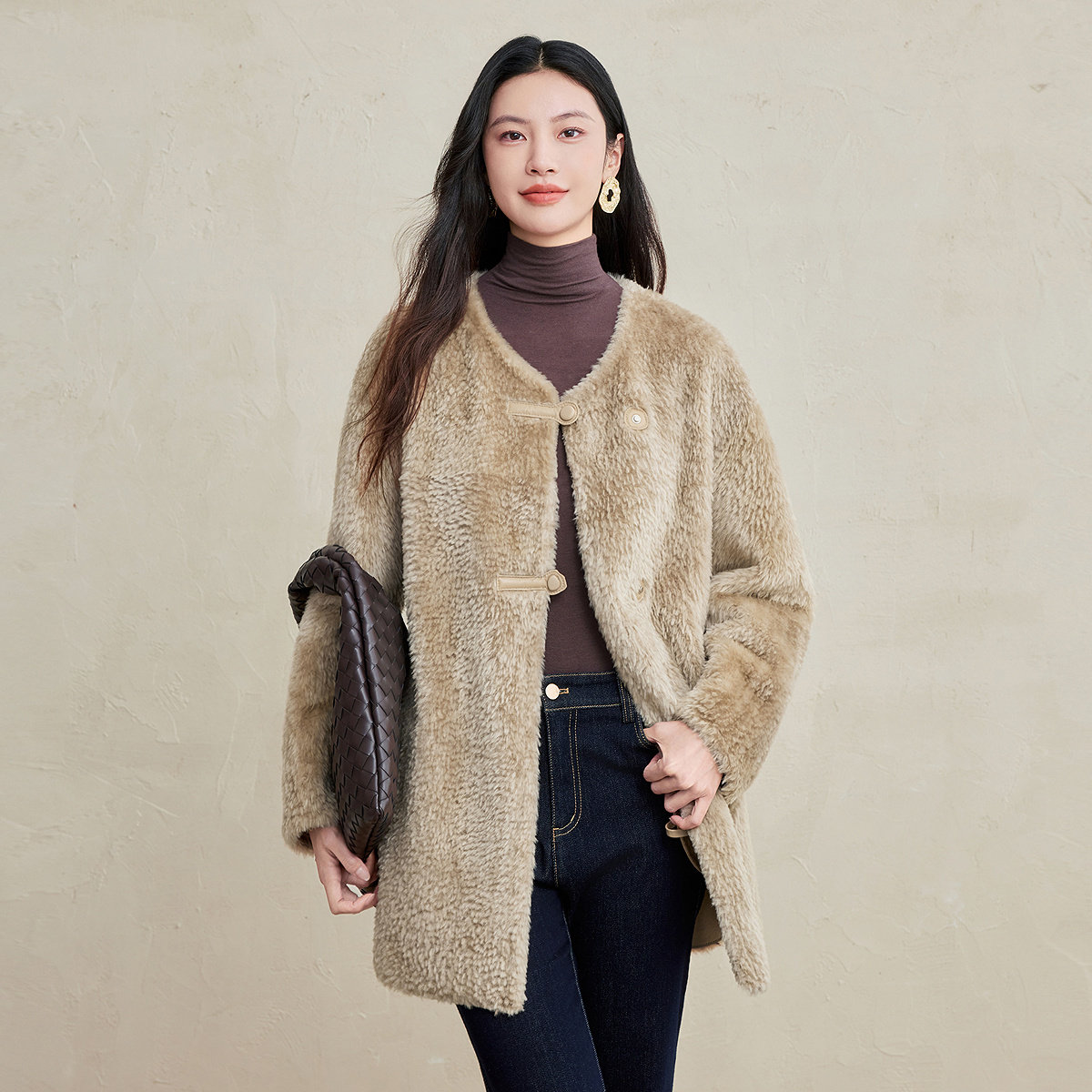 FINITY菲妮迪高实穿度拉贡皮草2026春新款中长款优雅奢贵羊毛外套
