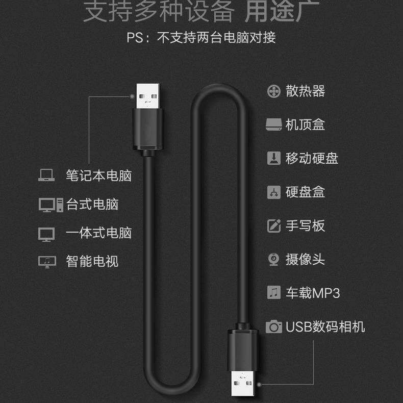 达而稳 公对公USB线双头数据线3.0两头双向连接线笔记本散热器接口线电脑接移动硬盘盒传输线车载充电线U口