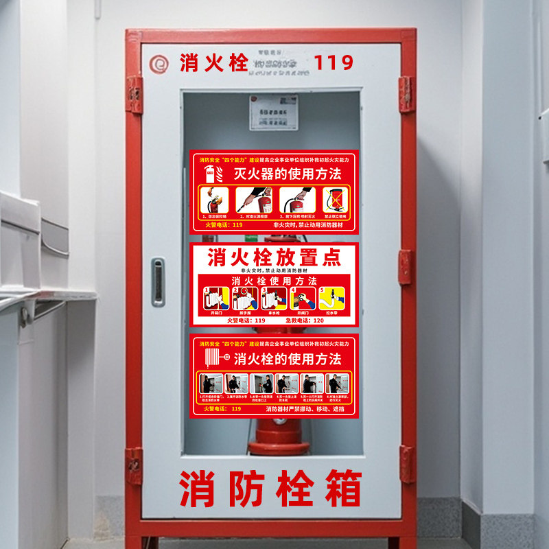 消防栓贴纸灭火器放置点标识牌消火栓使用方法贴纸消防标识标牌柜门装饰遮挡火警119年检标签安全警示牌定制