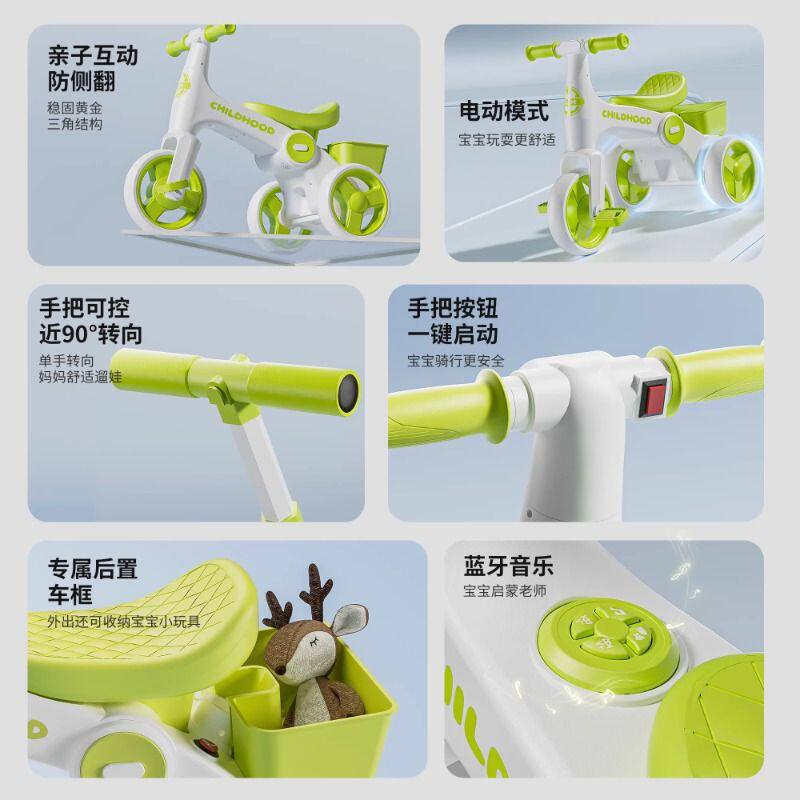 儿童电动滑行车3岁以上宝宝三轮车可推可骑平衡脚踏车溜溜手推车