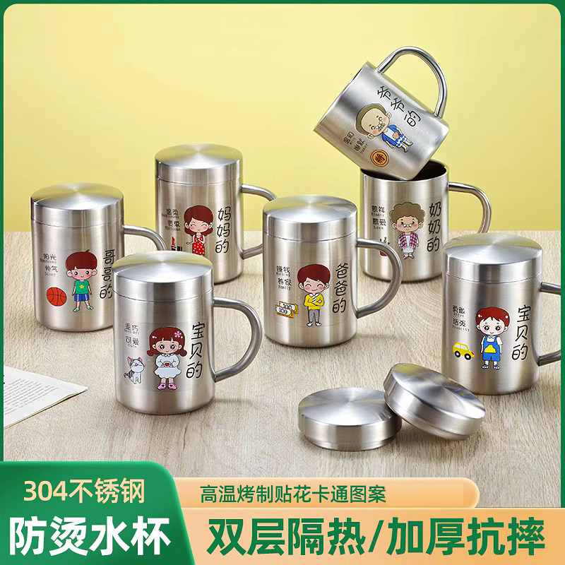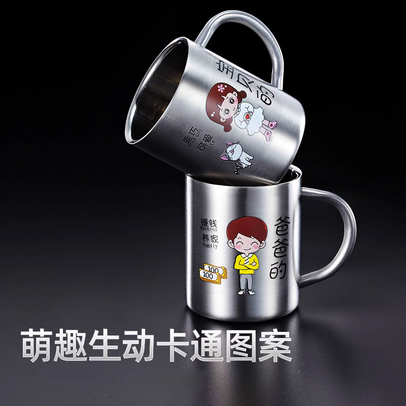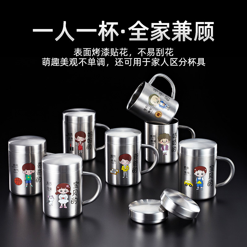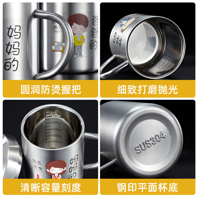 刻度牛奶水杯儿童亲子杯家用304不锈钢杯子一家三口四口防摔防烫