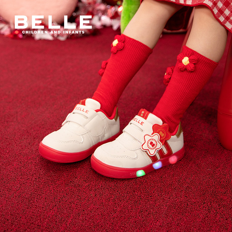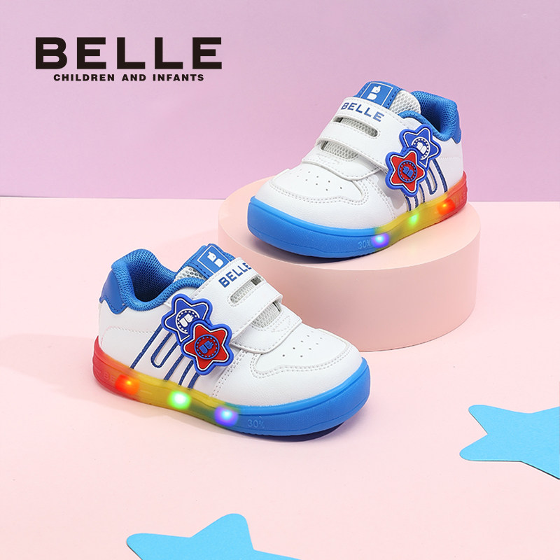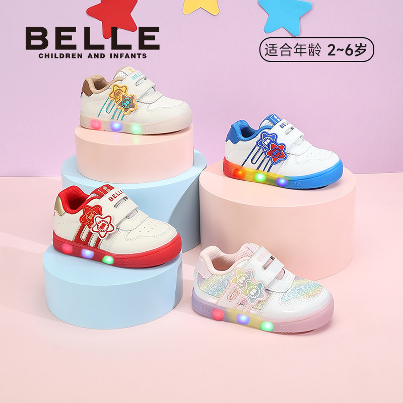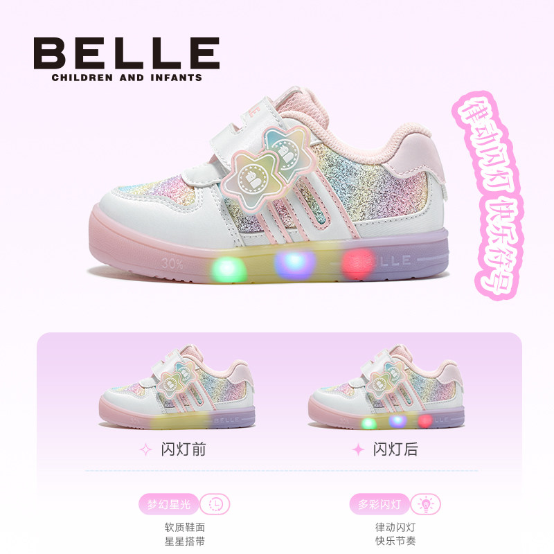 百丽童鞋26春季新款男女童小星星闪灯鞋软底学步鞋宝宝鞋休闲板鞋