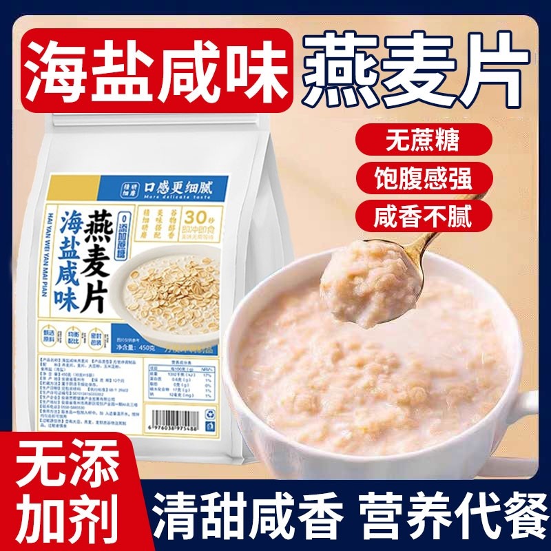 海盐咸味燕麦片营养早餐即食冲饮无糖精低独立小包脂减健身肥专用