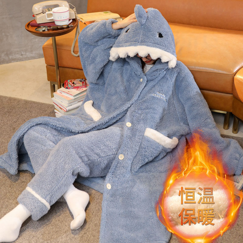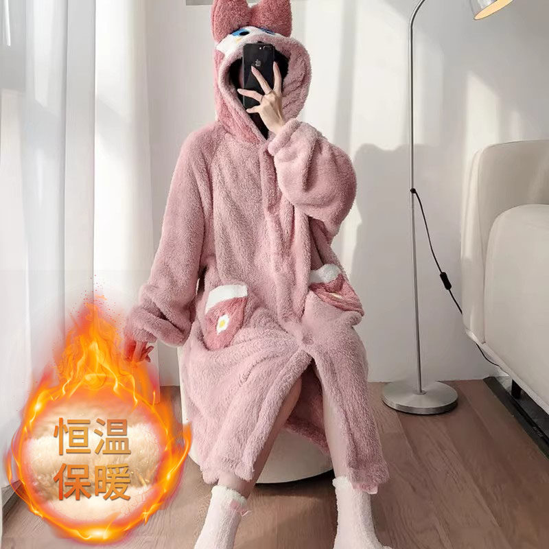 浪莎2025新款睡衣女秋冬季珊瑚绒长袖毛绒连体厚款睡袍韩范家居服