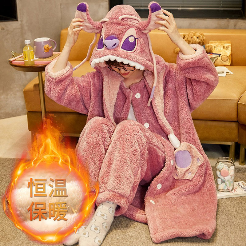 睡衣女冬季加厚保暖珊瑚绒套装2025年新款卡通秋冬款法兰绒家居服