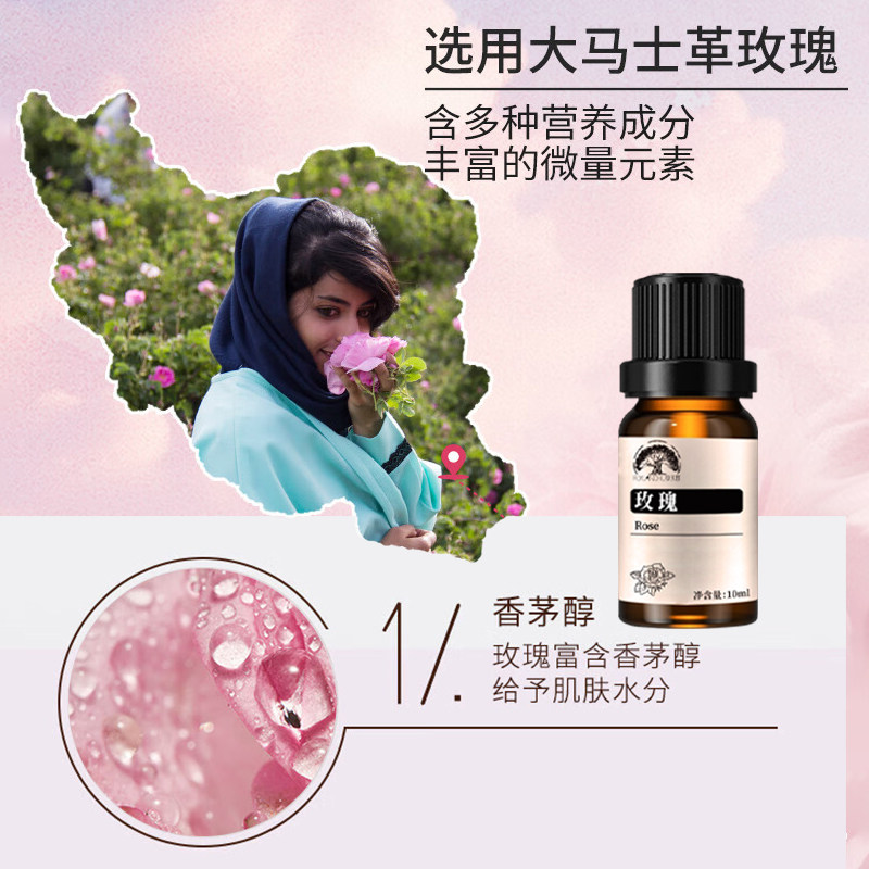 新疆大马士革玫瑰单方精油提亮保湿清爽100%精油疏肝解郁护肤香薰